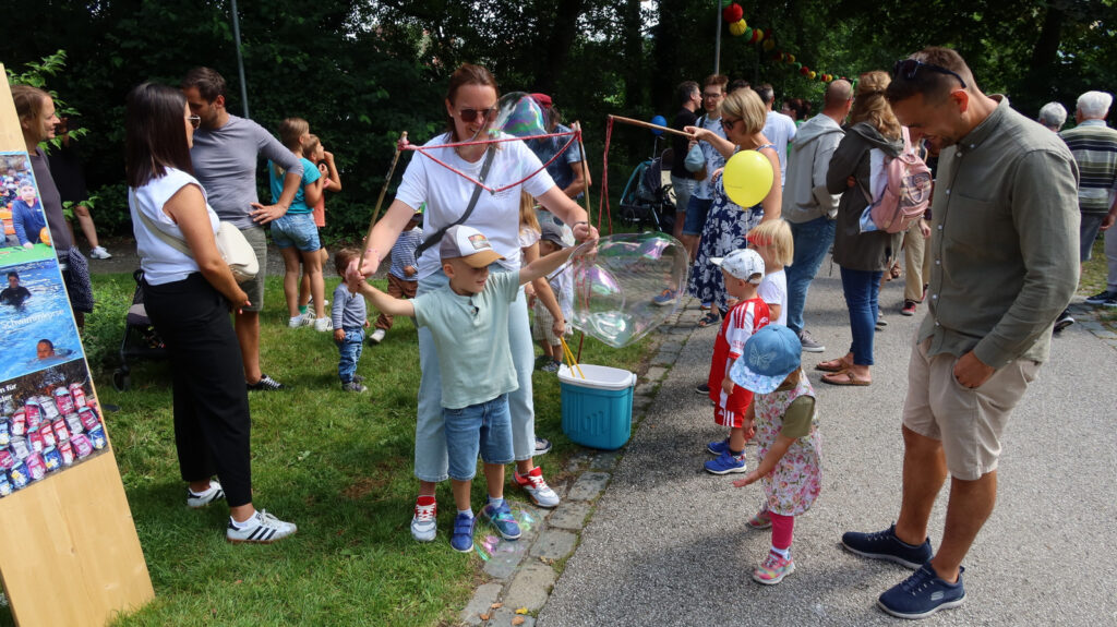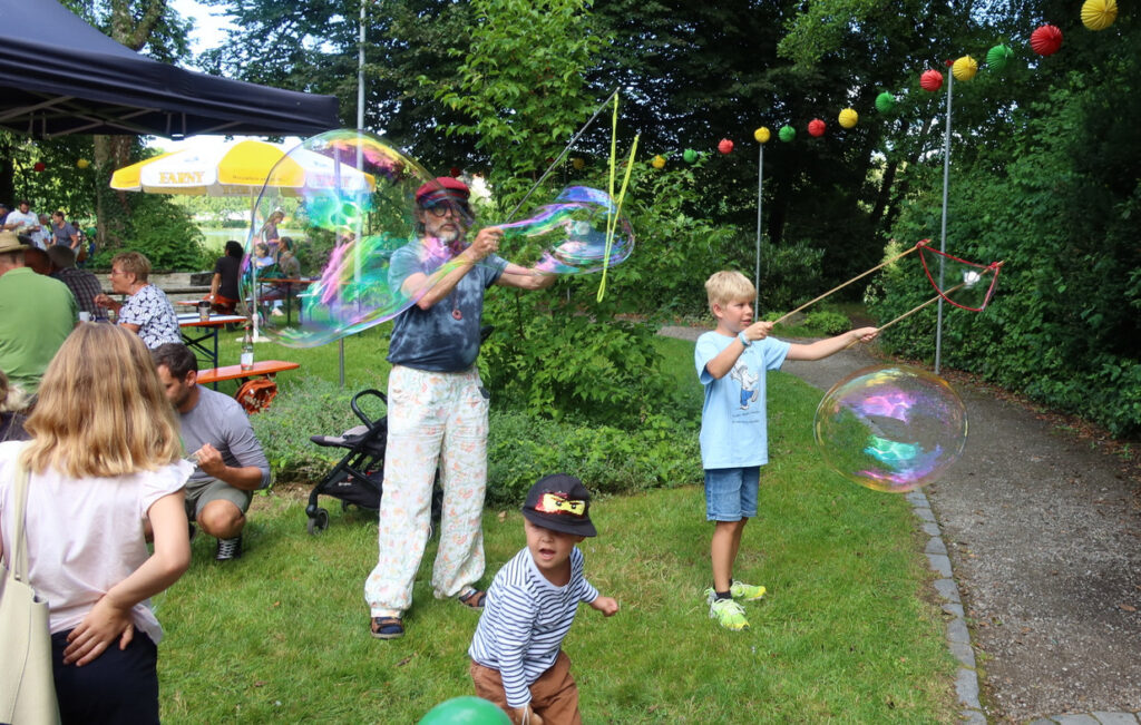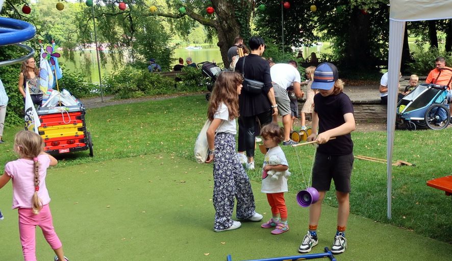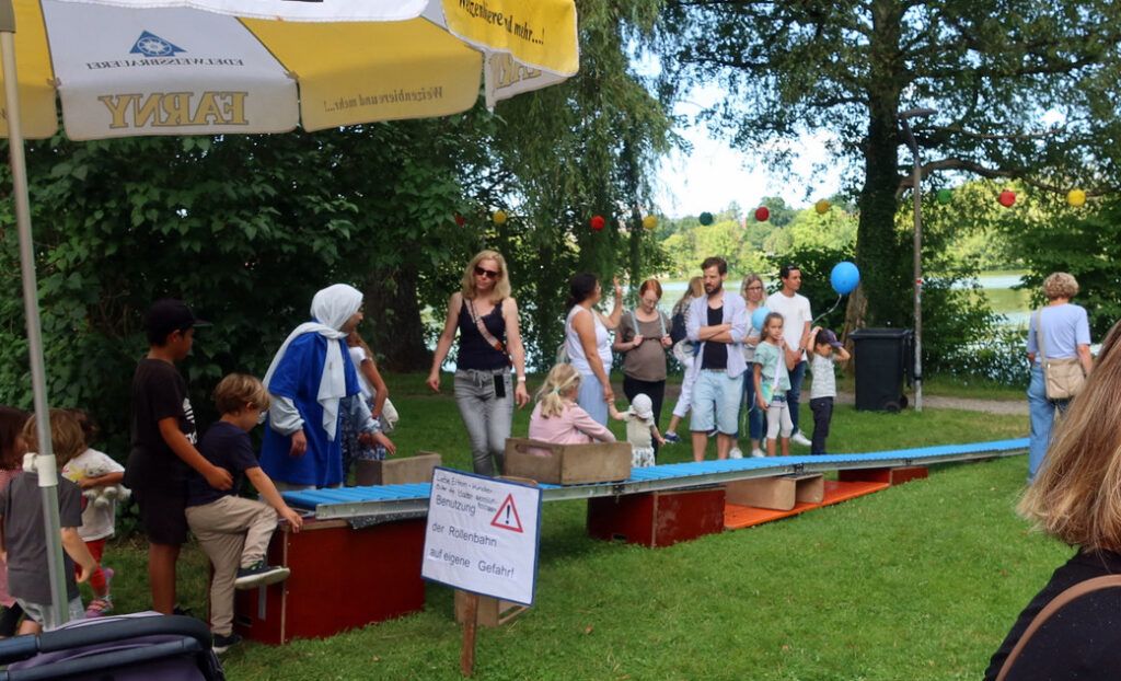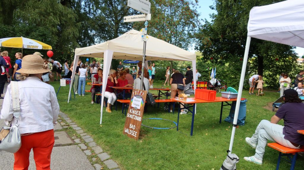 Da die Aktionen am Stadtsee mit Kinderprogramm des Kinderschutzbunds Bad Waldsee und vom Jugendhaus Prisma erst am Sonntag zur Geltung gelangen, habe ich mich dorthin begeben, vom neu gestalteten Platz an der Grabenmühle kommend, wo alle Plätze im Freien beim Musikverein Molpertshaus stets belegt waren. Erfreulich war, dass dort die Preise für Getränke und Imbiss familienfreundlich geblieben sind. Das war nicht überall so. Riesengroß war das Gedränge auch beim Flohmarkt wieder. Das Wetter nachmittags war super sonnig geworden.