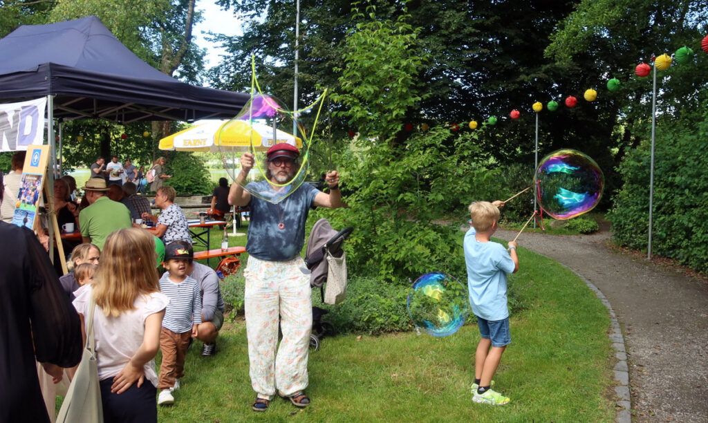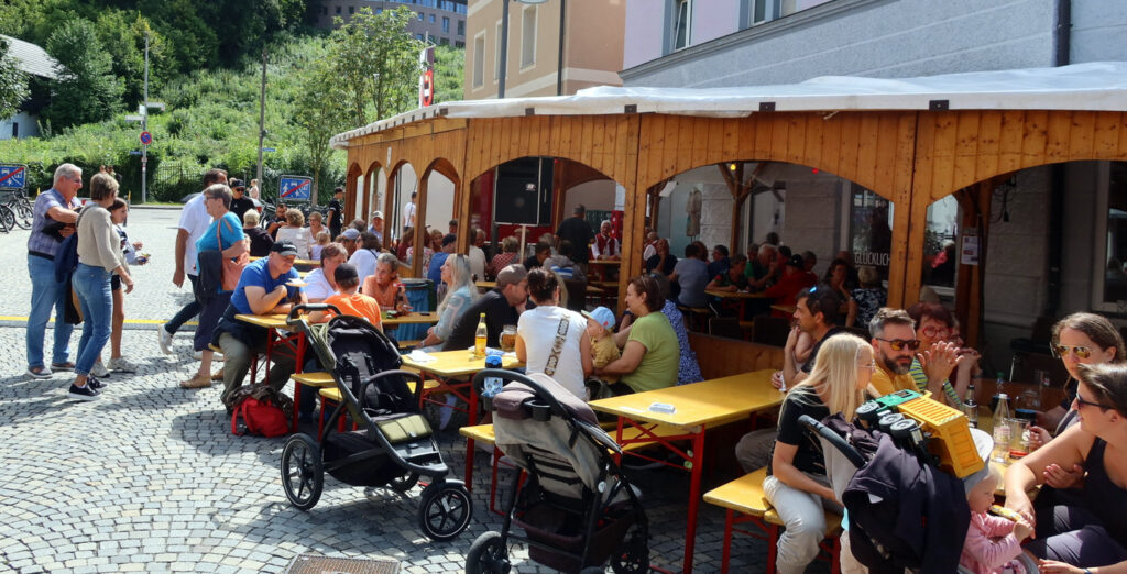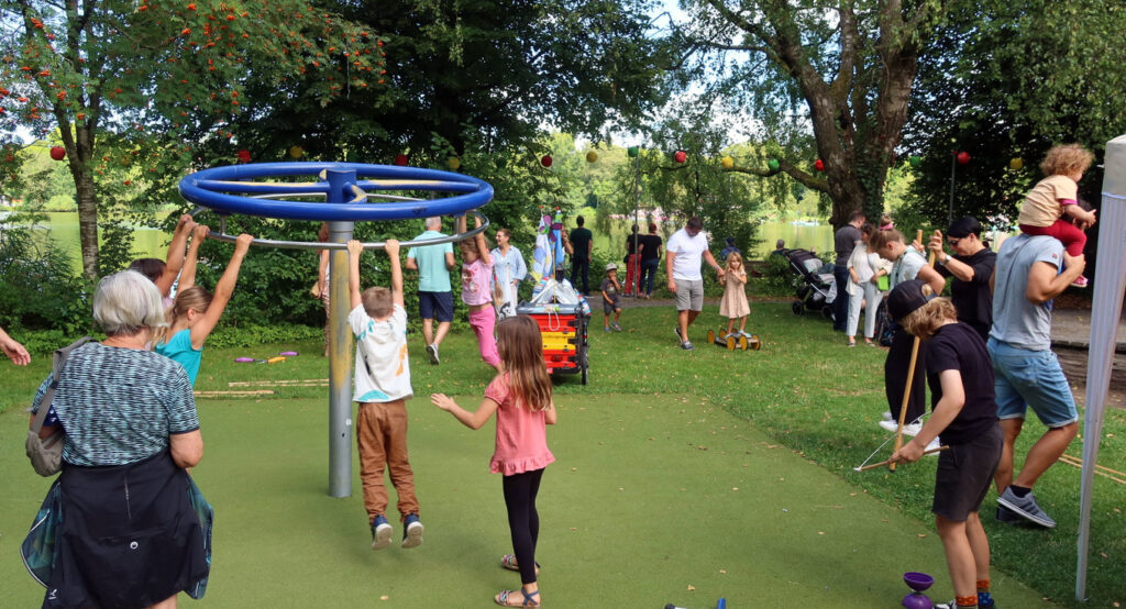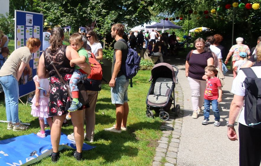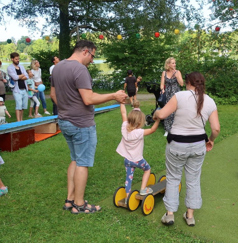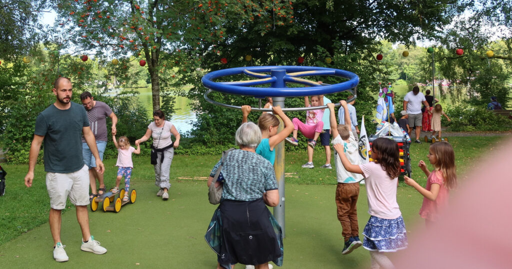 Da die Aktionen am Stadtsee mit Kinderprogramm des Kinderschutzbunds Bad Waldsee und vom Jugendhaus Prisma erst am Sonntag zur Geltung gelangen, habe ich mich dorthin begeben, vom neu gestalteten Platz an der Grabenmühle kommend, wo alle Plätze im Freien beim Musikverein Molpertshaus stets belegt waren. Erfreulich war, dass dort die Preise für Getränke und Imbiss familienfreundlich geblieben sind. Das war nicht überall so. Riesengroß war das Gedränge auch beim Flohmarkt wieder. Das Wetter nachmittags war super sonnig geworden.