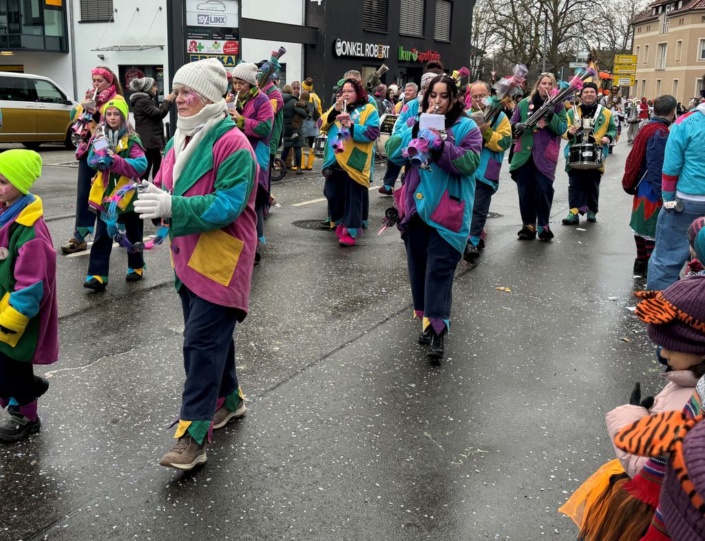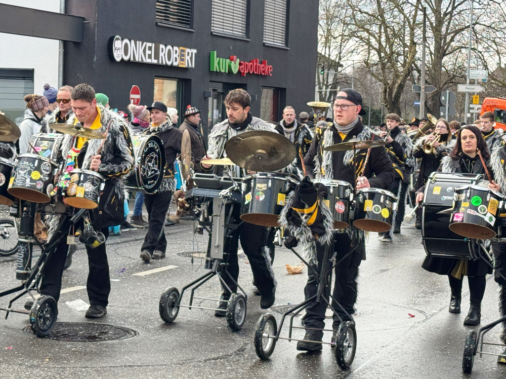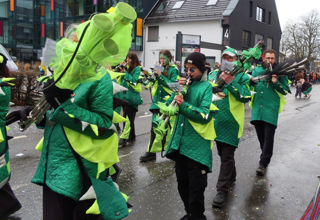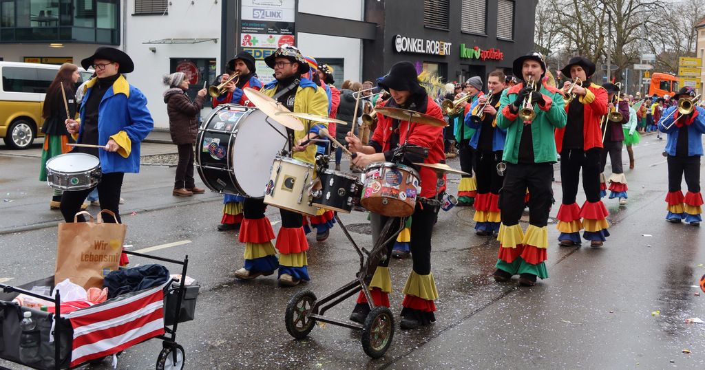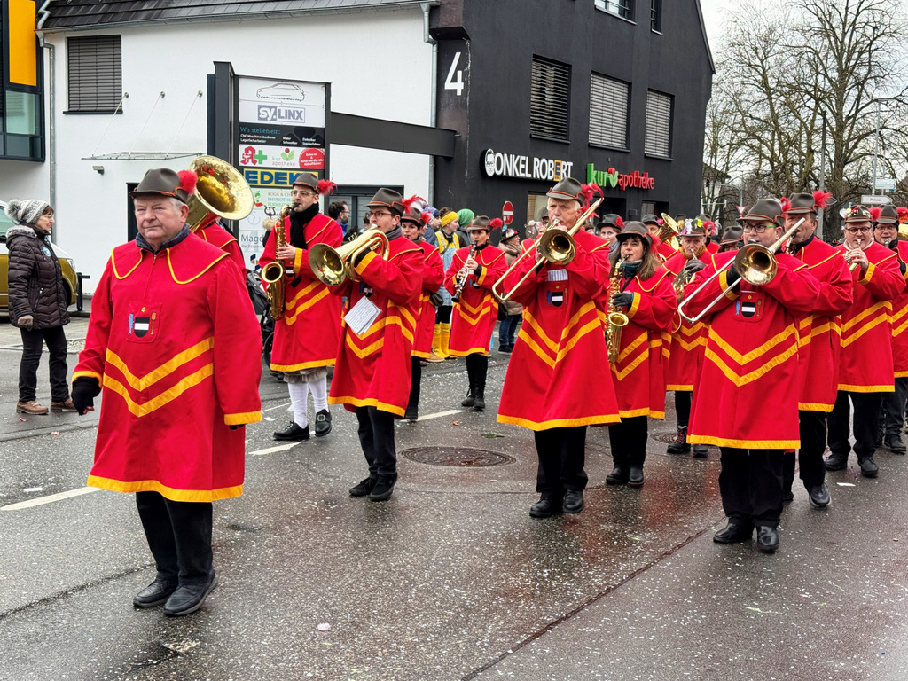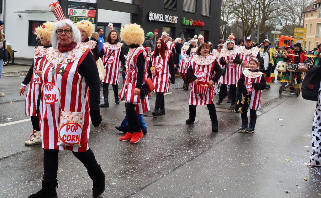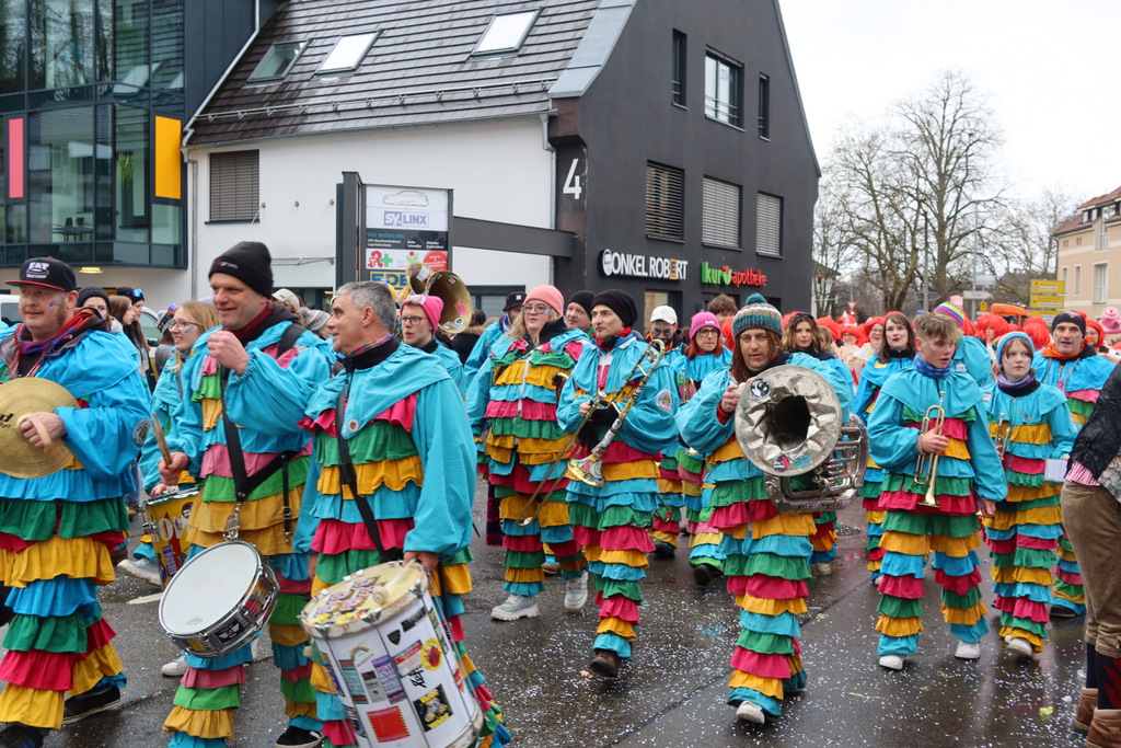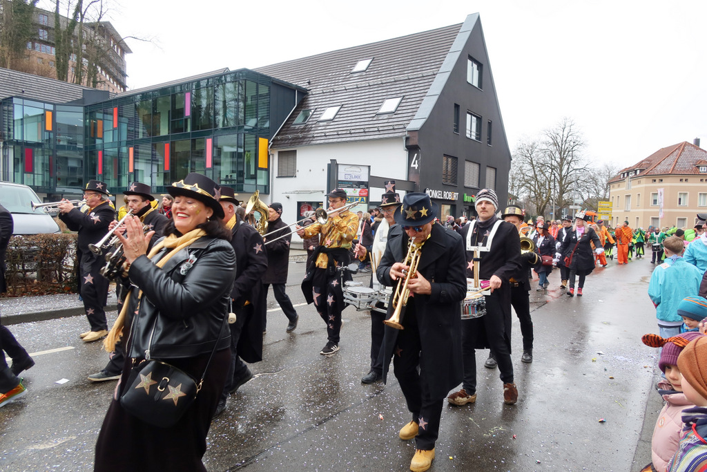 Mit fetzigen Klängen brachten die verschiedenen Musikgruppen viel Bewegung in die riesengroße Schar der Närrinnen und Narren und in die Zuschauerreihen.