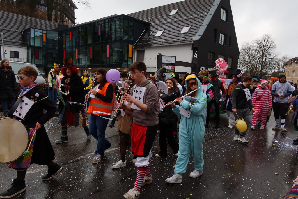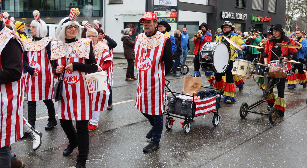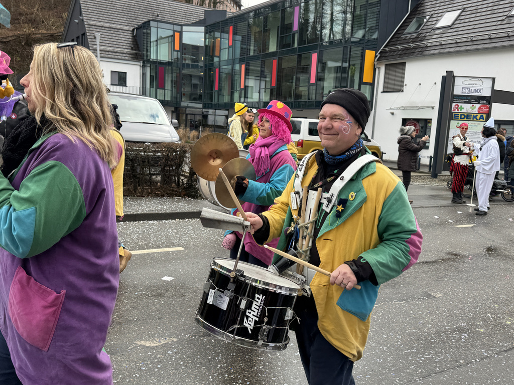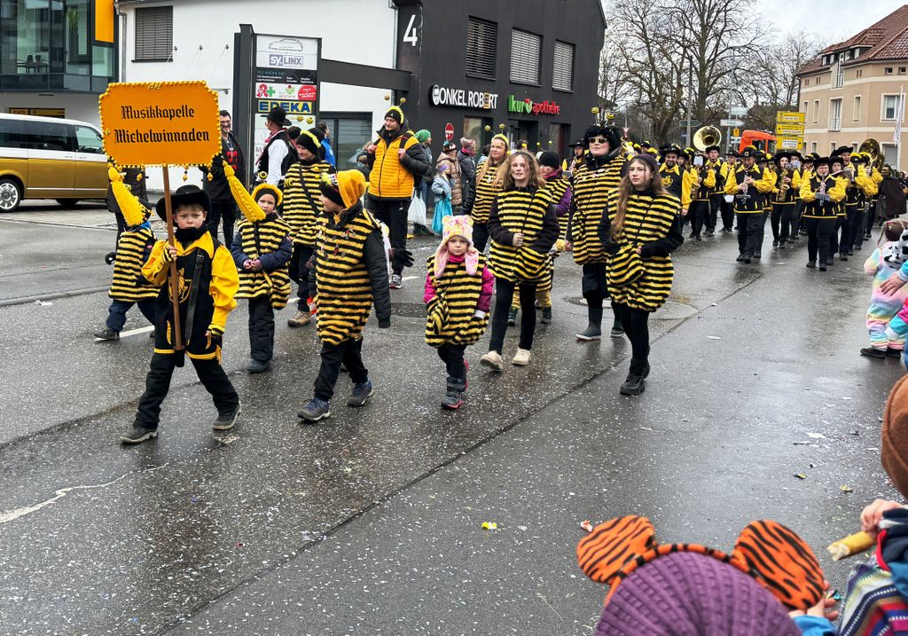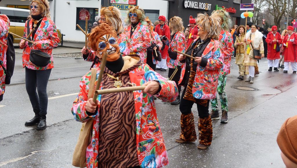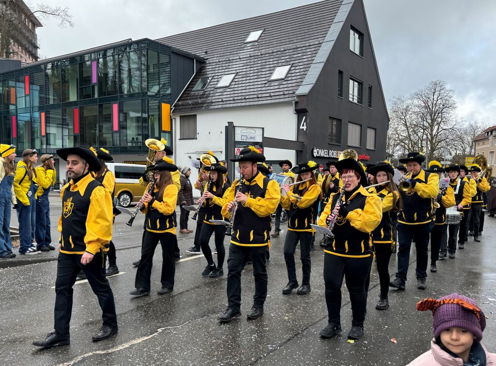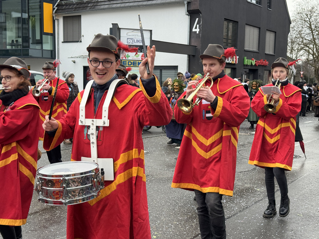 Mit fetzigen Klängen brachten die verschiedenen Musikgruppen viel Bewegung in die riesengroße Schar der Närrinnen und Narren und in die Zuschauerreihen.