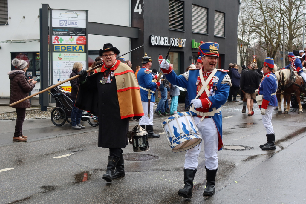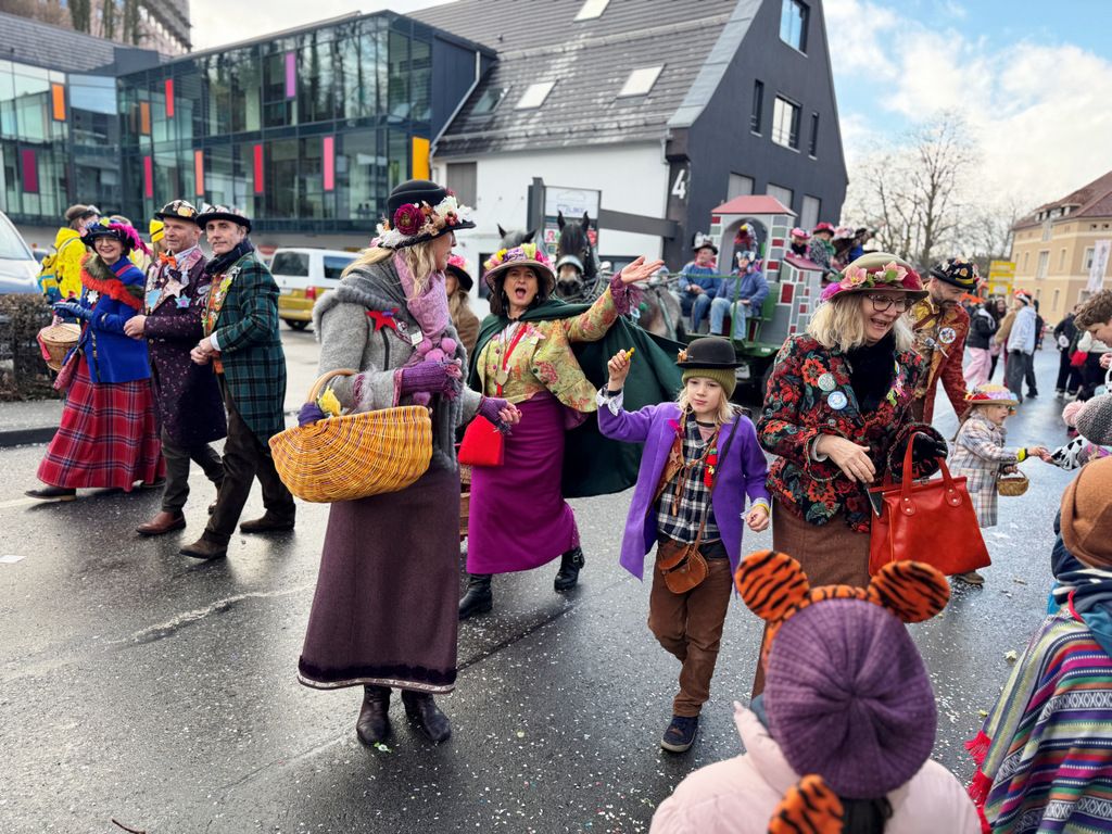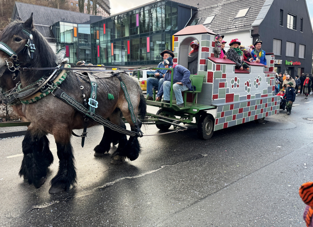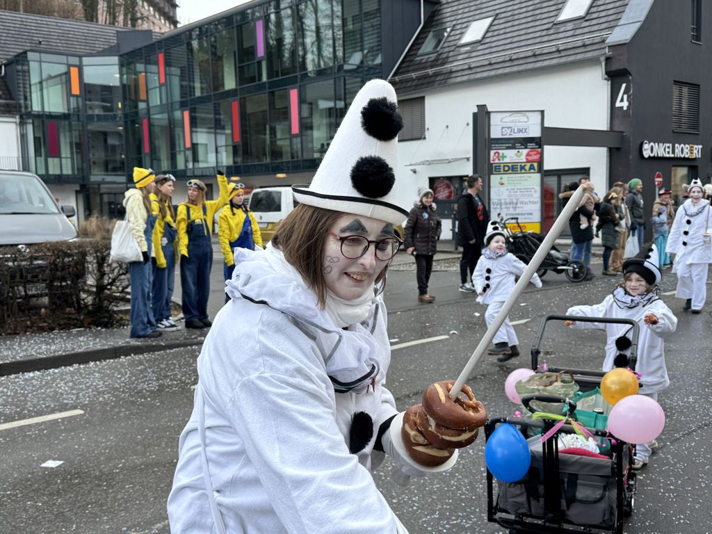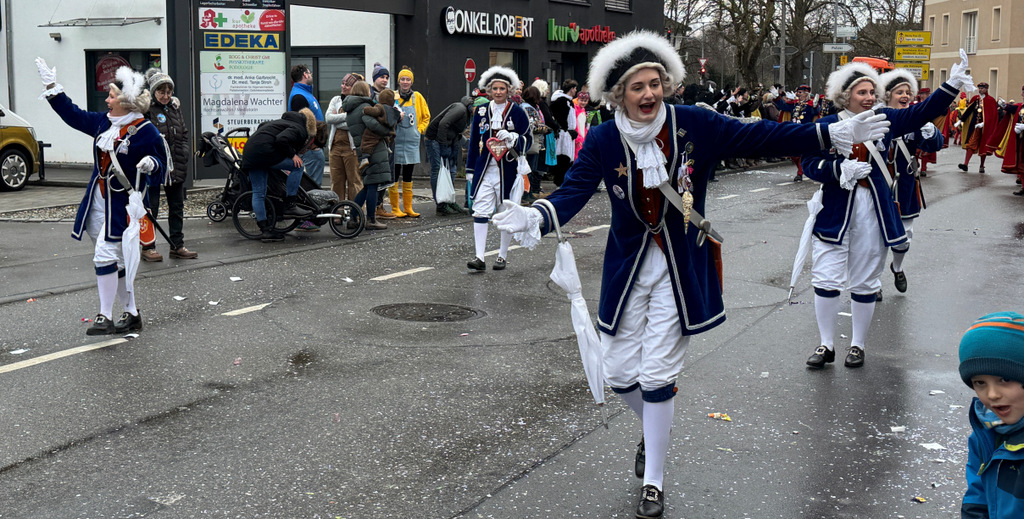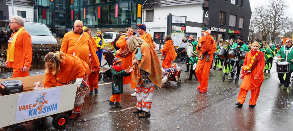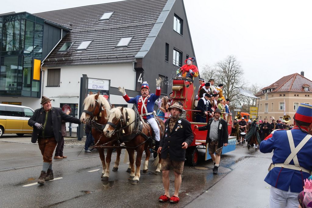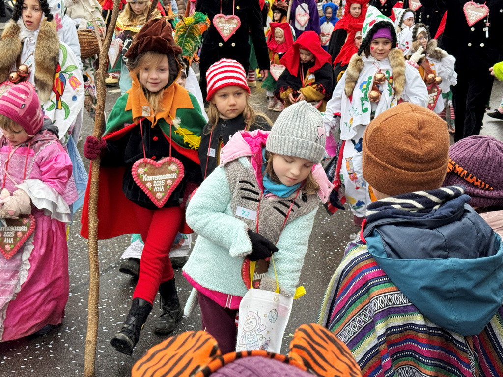 Höhepunkt ist der nachmittägliche Umzug. Zwar war das Wetter anfänglich keineswegs einladend, denn noch um die Mittagszeit schwebten große Schneeflocken vom wolkenverhangenen Horizont. Dann aber als sich der Umzug durch die Straßen bewegte, lichtete sich der Himmel. Der Umzugsweg war von allen Zufahrtsstraßen mit Großfahrzeugen gesicher worden.
