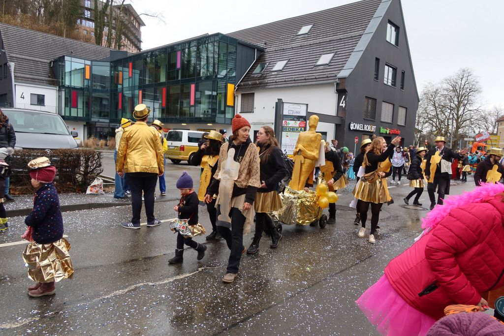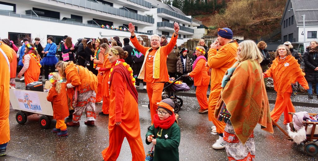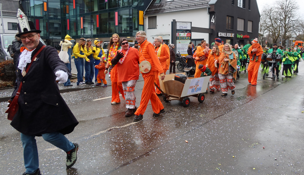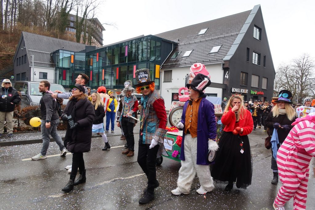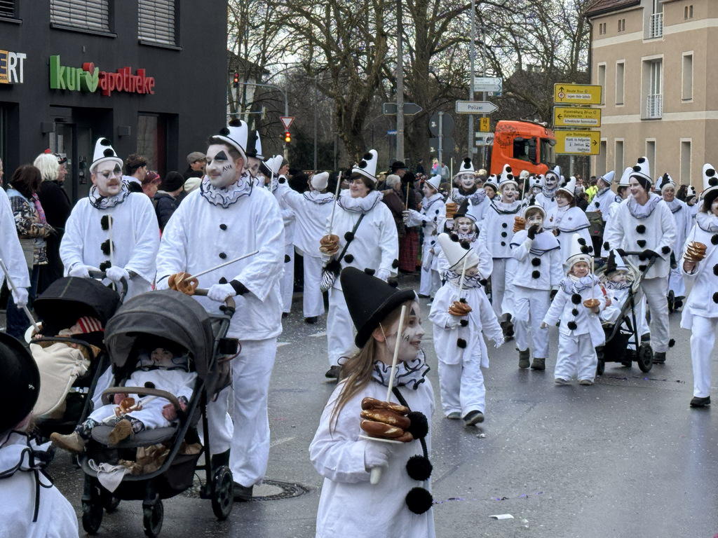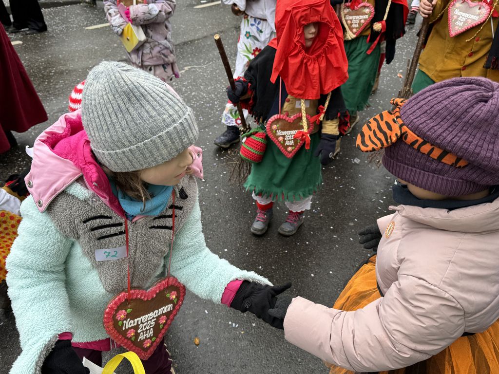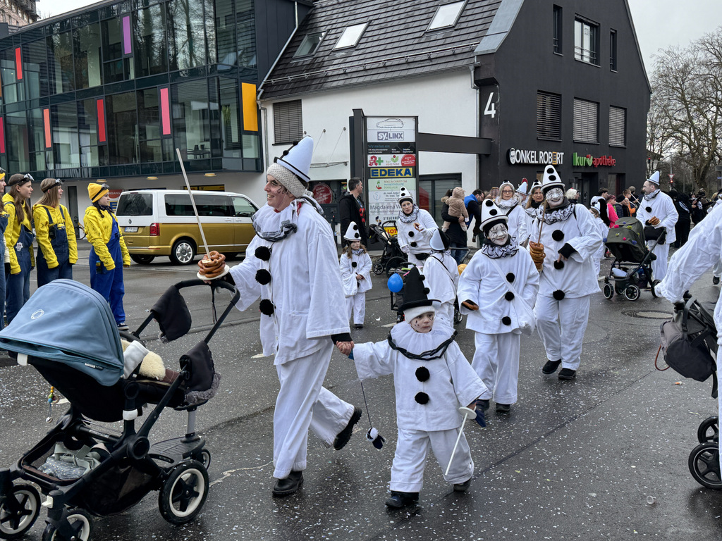 Höhepunkt ist der nachmittägliche Umzug. Zwar war das Wetter anfänglich keineswegs einladend, denn noch um die Mittagszeit schwebten große Schneeflocken vom wolkenverhangenen Horizont. Dann aber als sich der Umzug durch die Straßen bewegte, lichtete sich der Himmel. Der Umzugsweg war von allen Zufahrtsstraßen mit Großfahrzeugen gesicher worden.