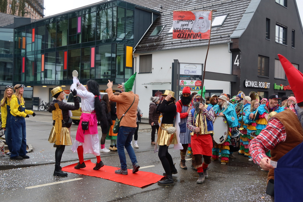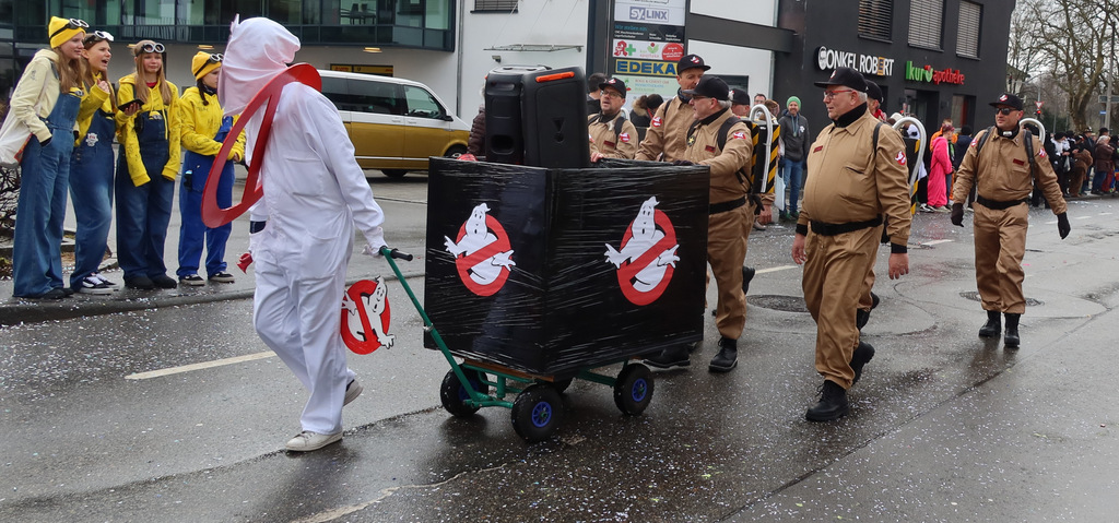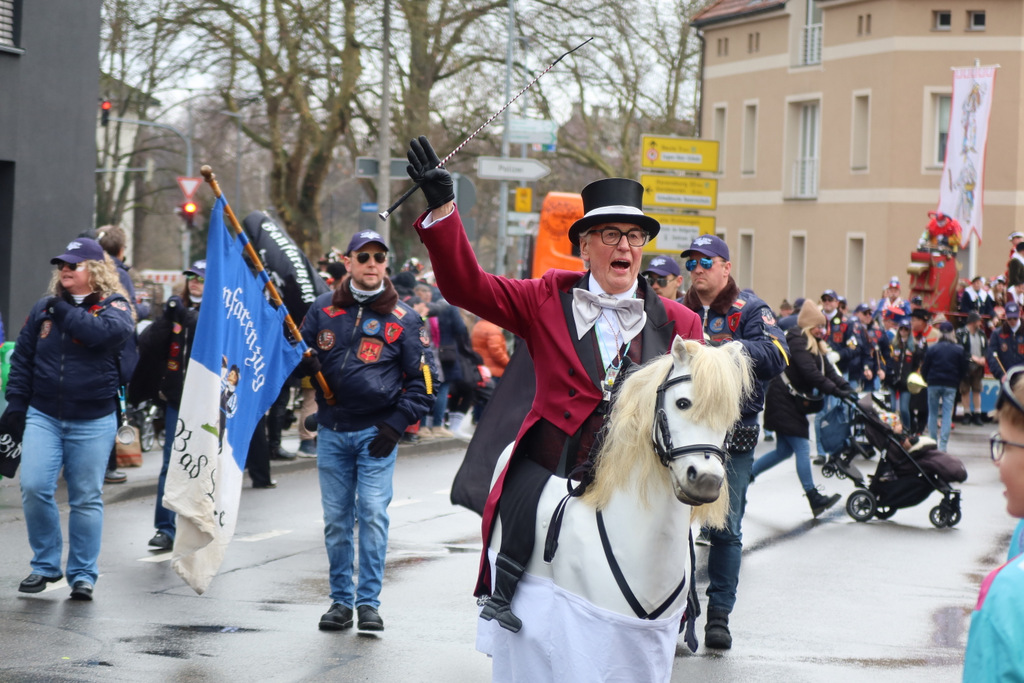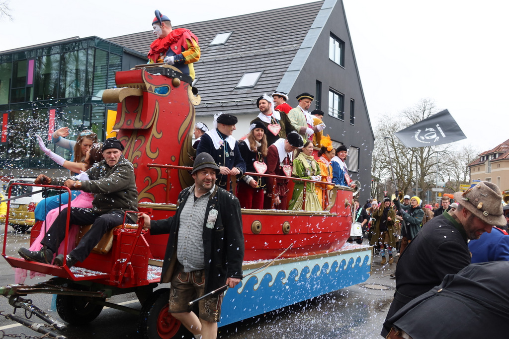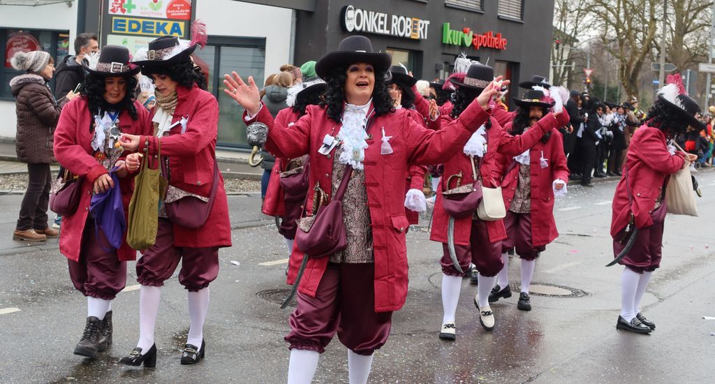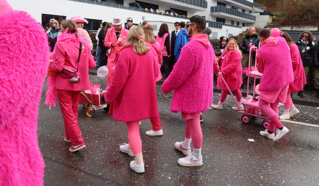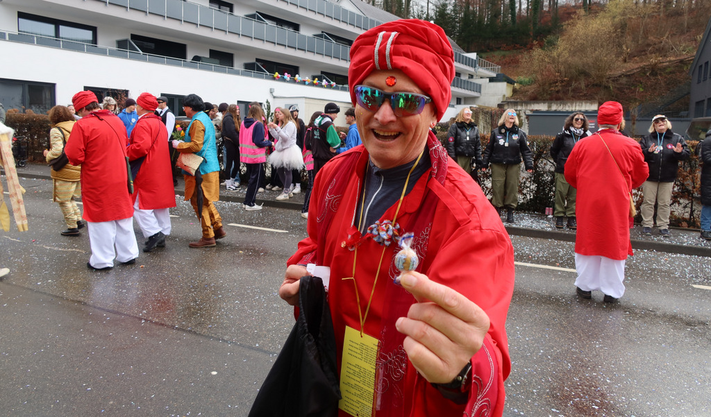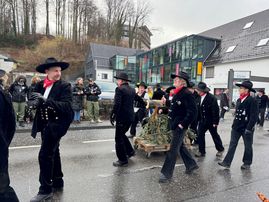 Höhepunkt ist der nachmittägliche Umzug. Zwar war das Wetter anfänglich keineswegs einladend, denn noch um die Mittagszeit schwebten große Schneeflocken vom wolkenverhangenen Horizont. Dann aber als sich der Umzug durch die Straßen bewegte, lichtete sich der Himmel. Der Umzugsweg war von allen Zufahrtsstraßen mit Großfahrzeugen gesicher worden.