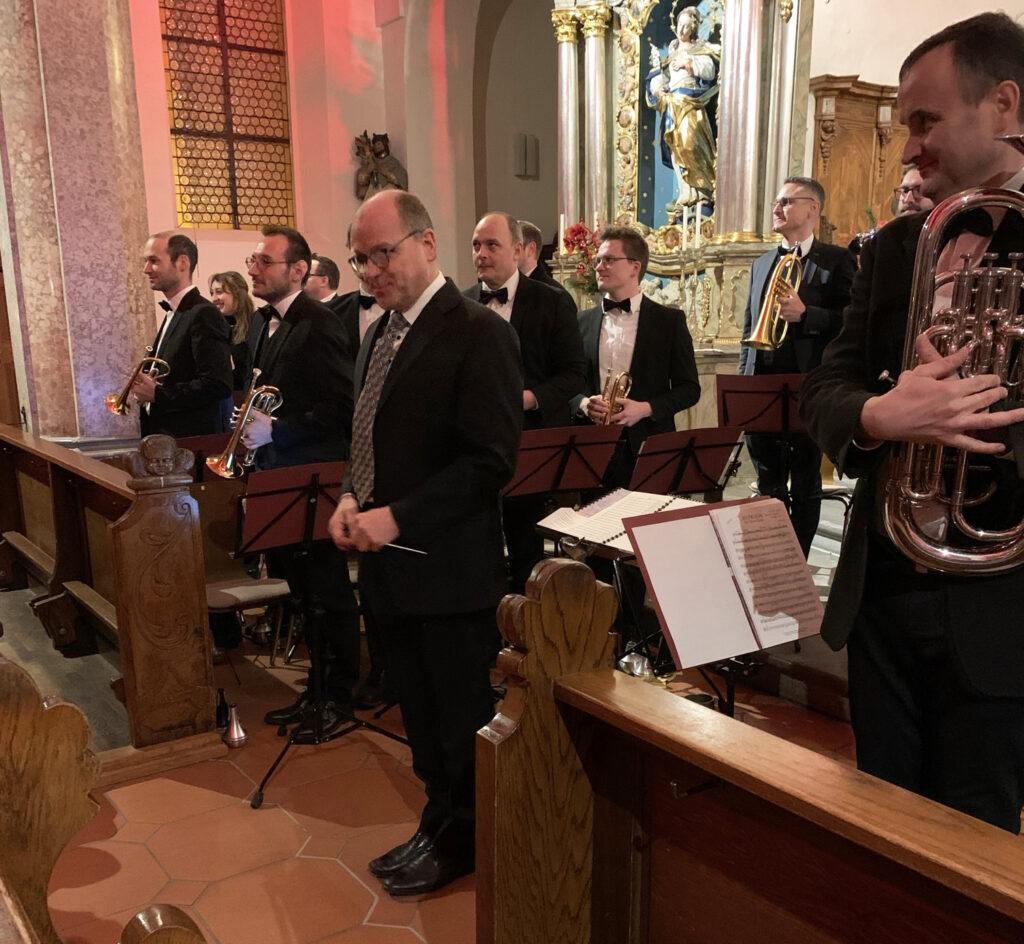 Bad Waldsee – Zu Bläserklang auf höchstem Niveau lud die weit über Oberschwaben hinaus bekannte und geschätzte Brass-Band Oberschwaben-Allgäu (BBOA) am 12. Januar zum Kirchenkonzert in St. Peter. Harald Stumpp, Sprecher der Band, durfte zahlreich erschienene Gäste begrüßen, insbesondere die beiden Pfarrer Bucher und Werner. Das damals noch weihnachtlich geschmückte Gotteshaus gilt bekanntlich als idealer Klangraum für besondere Konzertereignisse. Bernhard Reifer, aus Südtirol stammender musikalischer Leiter der Band, hatte ein sowohl der Örtlichkeit wie auch der Jahreszeit absolut angemessenes Konzertprogramm einstudiert.