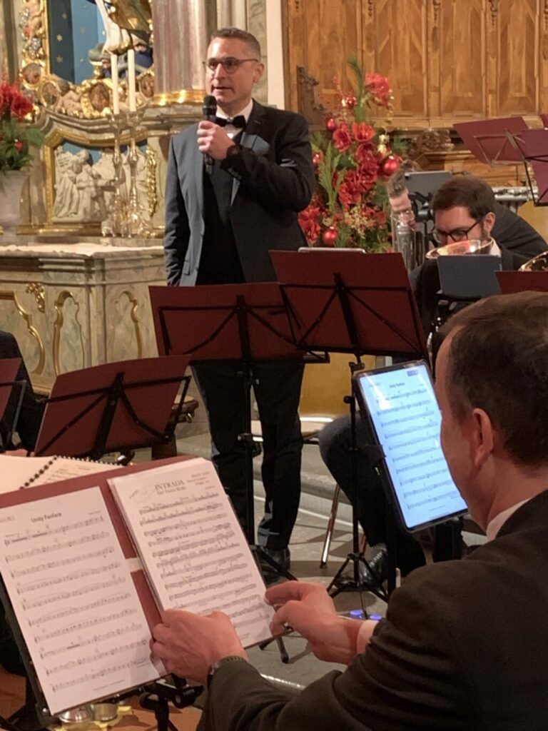 Auftakt war „Unity Fanfare“ vom ebenfalls aus Südtirol stammenden Tobias Psaier, Arrangeur und Komponist populärer Titel. Anspruchsvolle Fanfaren sind bekanntlich oft typische Blaskonzertauftakte. Dieser wahrlich feurige Titel kann die aktuelle Unruhe mit Trost und Hoffnung verbinden, so Reifer in seiner Ankündigung. Diese Absicht wurde in allen Registern, auch den leisen, übernommen und mündete in ein in der Tat Hoffnung spendendes auch von den Pauken unterstrichenes Abschluss-Fortissimo. Damit zeigte das nach britischem Vorbild original zusammengesetzte Ensemble, bestehend aus 29 leidenschaftlichen Musikern, gleich zu Beginn, welch extrem vielseitige Spielarten es perfekt beherrscht.