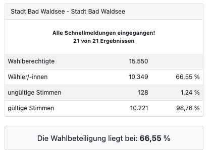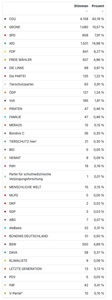 Nachstehend das Ergebnis im Detail (entnommen der Webseite der Stadt):