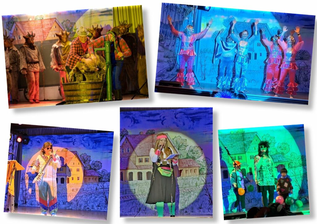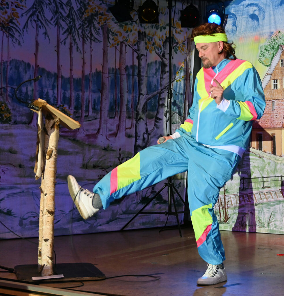 Fulminant geht’s weiter auf der Bühne. Getreu dem Motto „Neon, Pink und Neue Deutsche Welle – Die 80er feiern wir auf alle Fälle“ kommt Nena, dargestellt von der Ehrengildemeisterin Sonja Münsch und ihren Enkeln, mit 99 Luftballlons auf die Bühne. Die Performance ist super, der Beifall auch und wenn die Kinder ihre Ballons ins Publikum schießen, wird jedes Herz berührt.