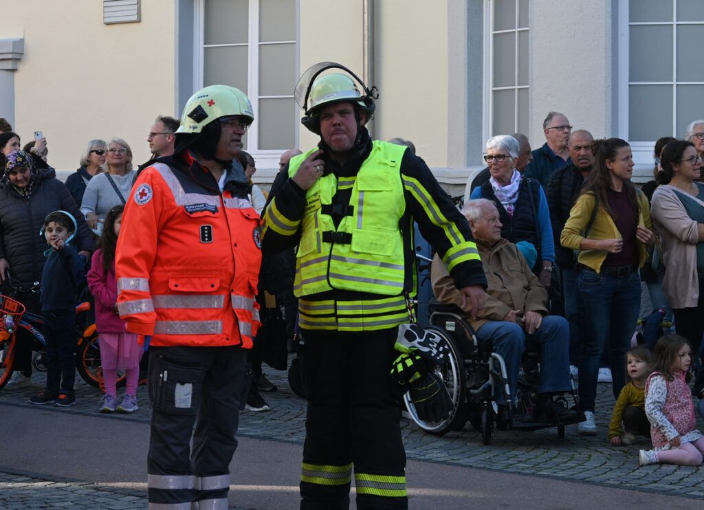 „Achtung, jetzt wird’s laut“, warnte Becker am Mikro und die Sirene ließ ihren durchdringenden, auf- und abschwellenden Ton hören. Das ging wirklich durch Mark und Bein. „Damit kann die Feuerwehr alarmiert werden, wenn alle anderen Möglichkeiten zusammenbrechen“, erfuhren die Zuschauer.