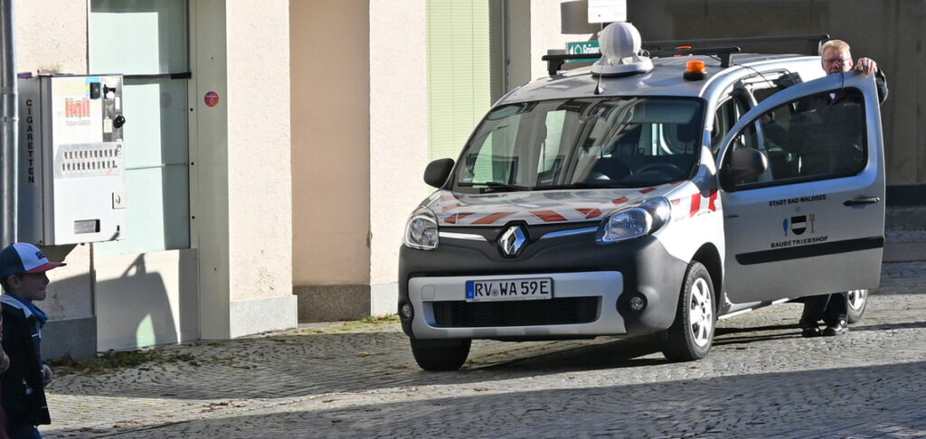 Florian (nomen est omen) Becker erläuterte den zahlreichen Besuchern das Spektakel. Als erstes bekam das neue Einsatzfahrzeug des Bauhofes seinen Auftritt. Nach den Erfahrungen mancher Katastropheneinsätze, bei denen der Strom, somit oft auch die Kommunikation mit Rundfunk- und TV-Geräte, Festnetz- und Mobil-Telefone, ausgefallen war, hat sich die Stadt nun eine mobile Sirene angeschafft.