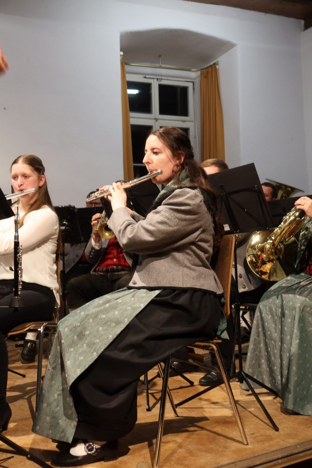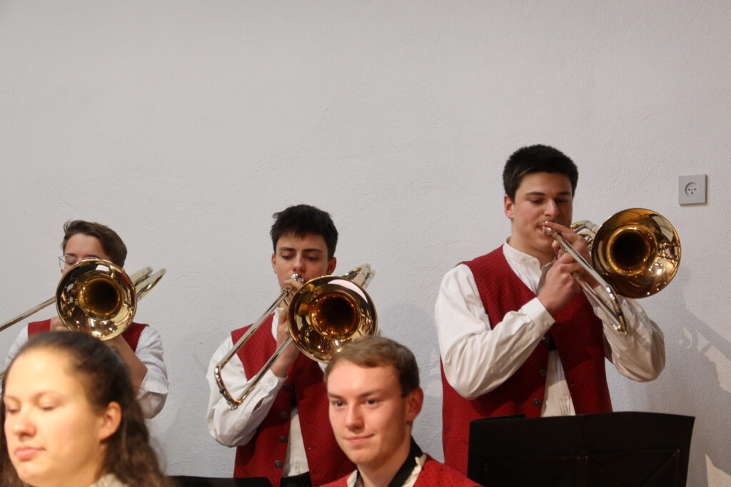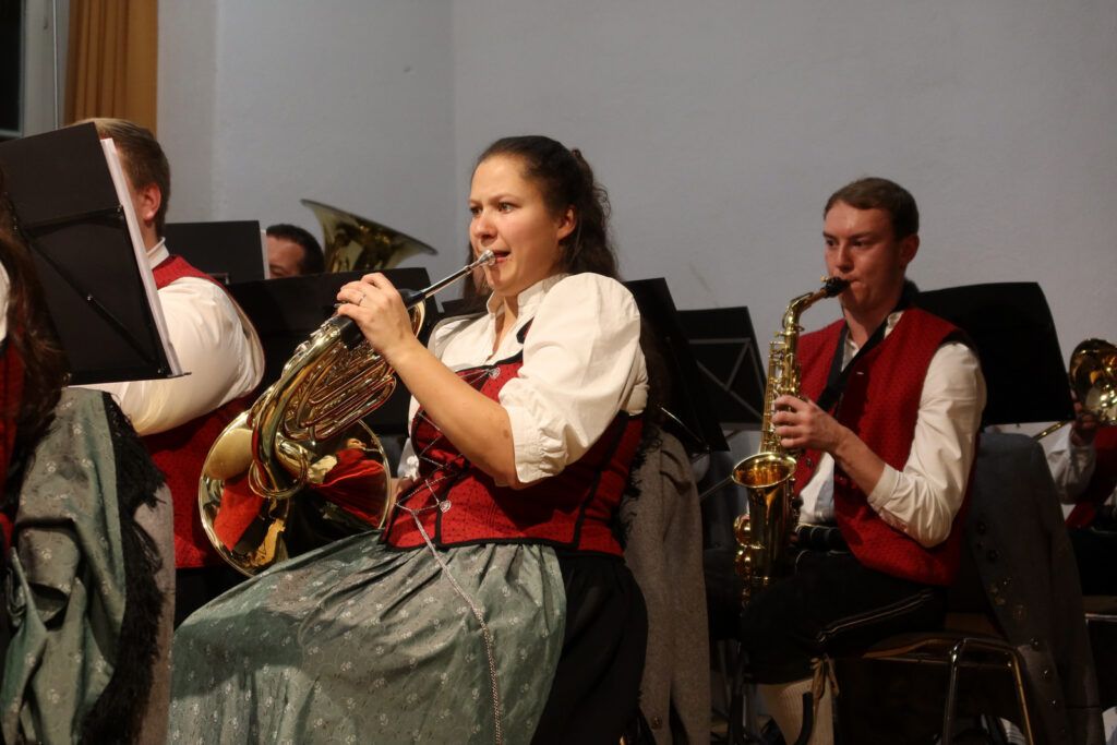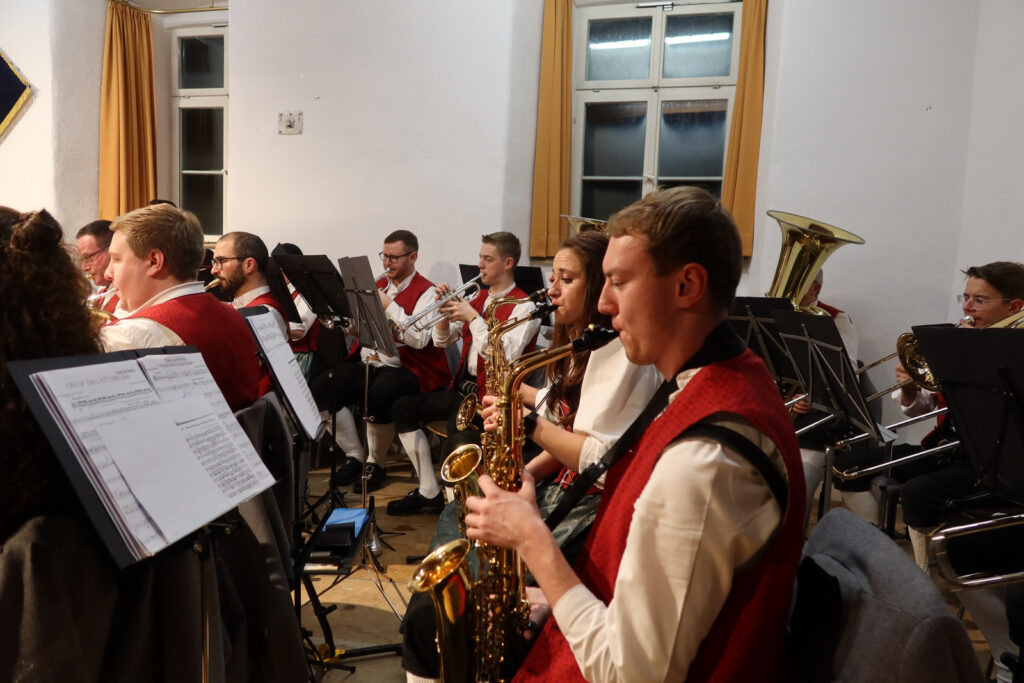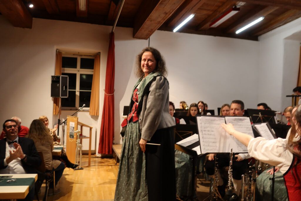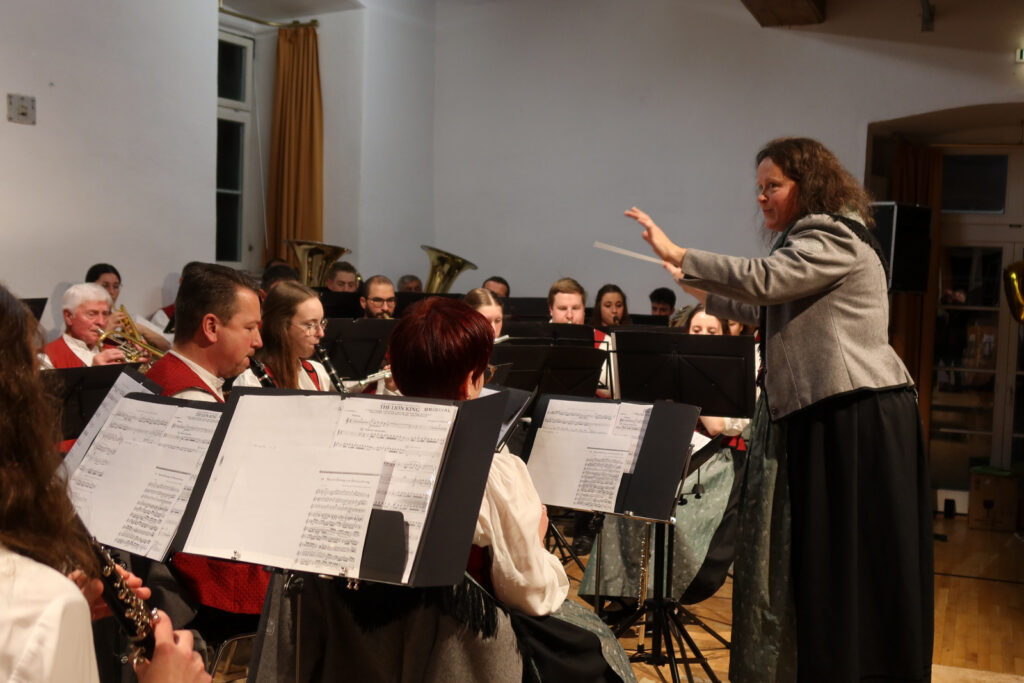 Ohne Zugaben durften die Musikerinnen und Musiker nicht von der Bühne. Zumal ja bekannt war, dass die Dirigentin Karin Michele nach acht Jahren hier bei der „Concordia“ ihr so erfolgreiches Dirigat in andere Hände gibt. Geradezu frenetisch beklatscht wurde die 1. Zugabe „Nothing gonna change my love for you“, bei dem Tobias Schmid als Solist auf seiner Trompete brillierte und reichlich Sonderapplaus erntete. Zum Finale der Zugaben gehörte auch der Ohrwurm „Ein Leben lang“ und dann mit „White Christmas“ wurde auch noch amerikanische Weihnacht in den Burgsaal gezaubert.