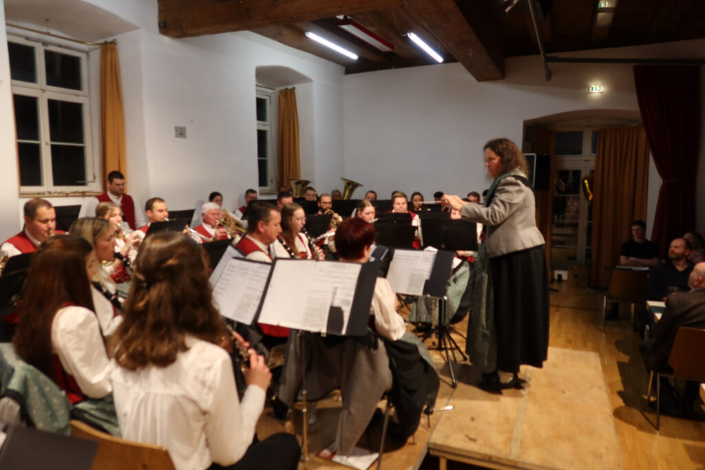 Dirigentin Karin Michele hatte mit ihrer 41-köpfigen Musikerschar in den letzten Wochen fleißig und intensiv geprobt. Sie hatte ein recht anspruchsvolles Programm unter dem Motto „Tierisch gut – Musik im Wandel“ zusammengestellt. Die Stückeauswahl hatte sie so getroffen, dass diese jeden Geschmack ansprach, zugleich aber von den Musikerinnen und Musikern alles abverlangte.