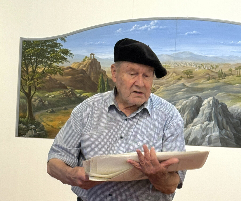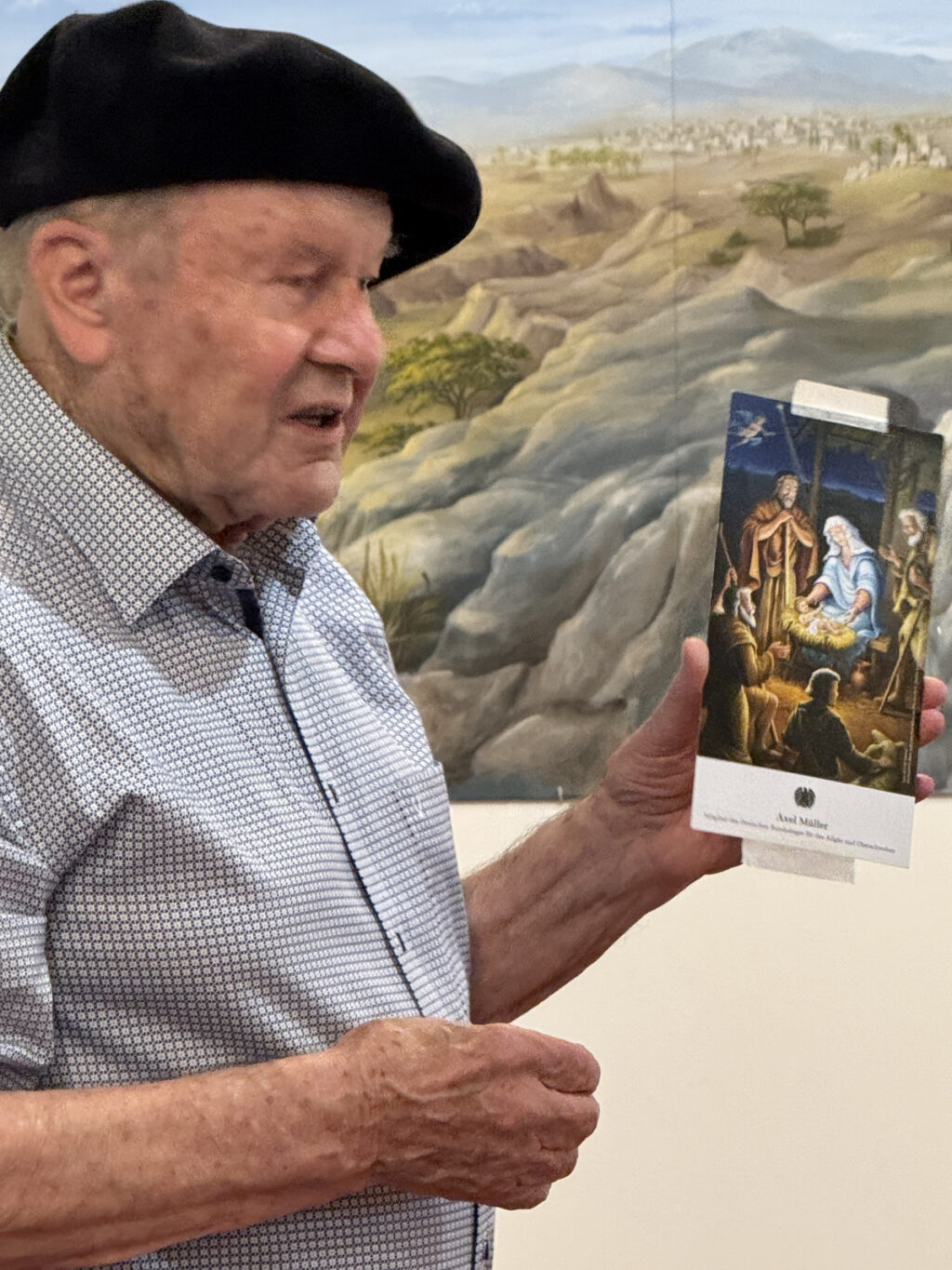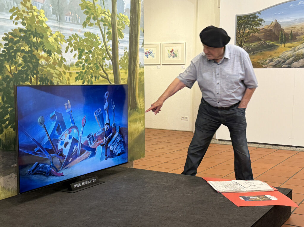 Die Fotos in der angehängten Galerie lassen erkennen, wie engagiert und lebendig der fitte Künstler, dem man 90 Lebensjahre überhaupt nicht anmerkt, seine hier ausgestellten Werke vorstellte. Ergänzend wurde mit Hilfe eines Bildschirms die Vielseitigkeit seines künstlerischen Schaffens sichtbar gemacht und vertieft.