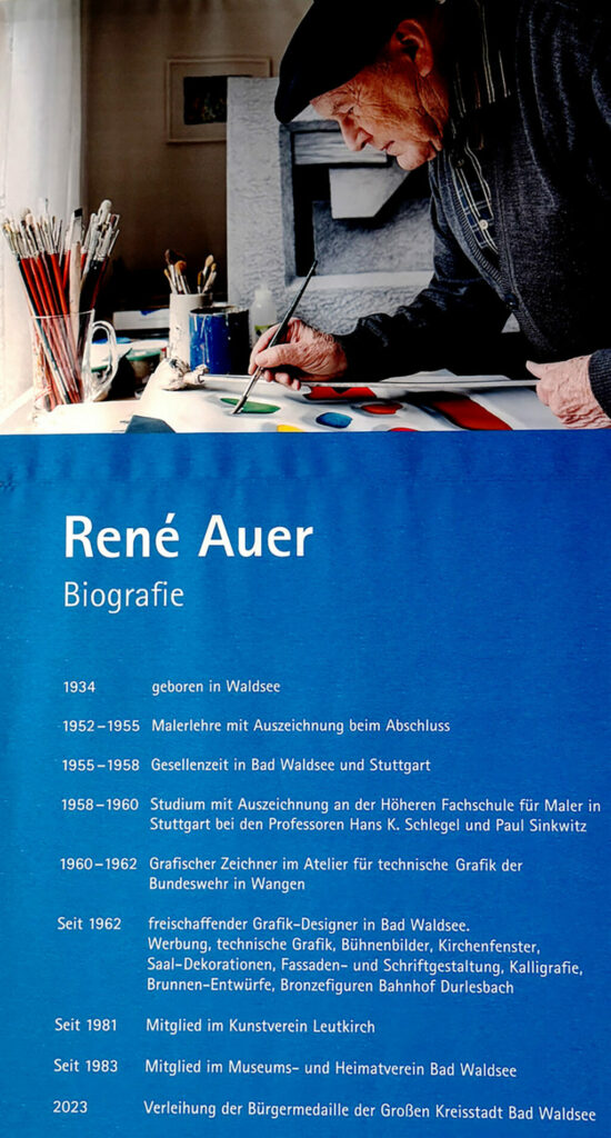 Bis zum 6. Oktober ist zu den bekannten Öffnungszeiten am Wochenende diese einzigartige Ausstellung mit verschiedenartigsten Werken des Bad Waldseer Künstlers René Auer noch zu bestaunen. Bekanntlich feierte René Auer erst kürzlich seinen 90. Geburtstag. In dessen Rahmen hier im Museum ein großes Fest gefeiert wurde. Darüber und über die Vernissage wurde in der Bildschirmzeitung berichtet.