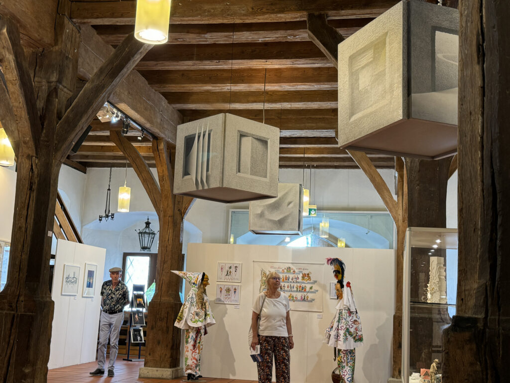 Bad Waldsee – Tief beeindruckt waren am vergangenen Samstagnachmittag (7. September) Besucherinnen und Besucher des Bad Waldseers Kornhausmuseums von der gegenwärtigen Sonderausstellung im Parterrebereich. René Auer gab machte für eine Freundesgruppe eine Führung durch seine Ausstellung, die einen Querschnitt seines Œuvres zeigt. Unser Mitarbeiter Rudi Martin war dabei.