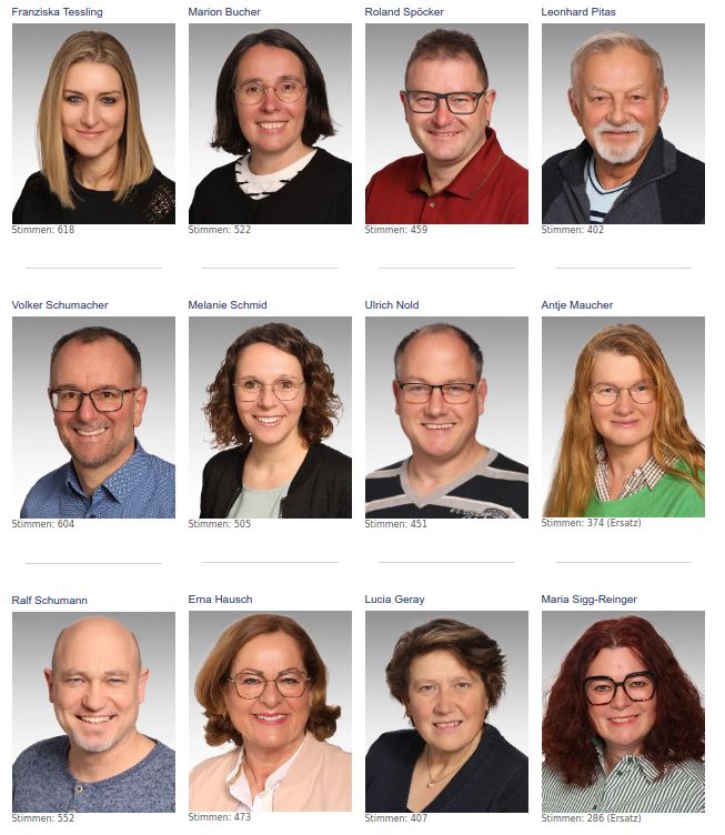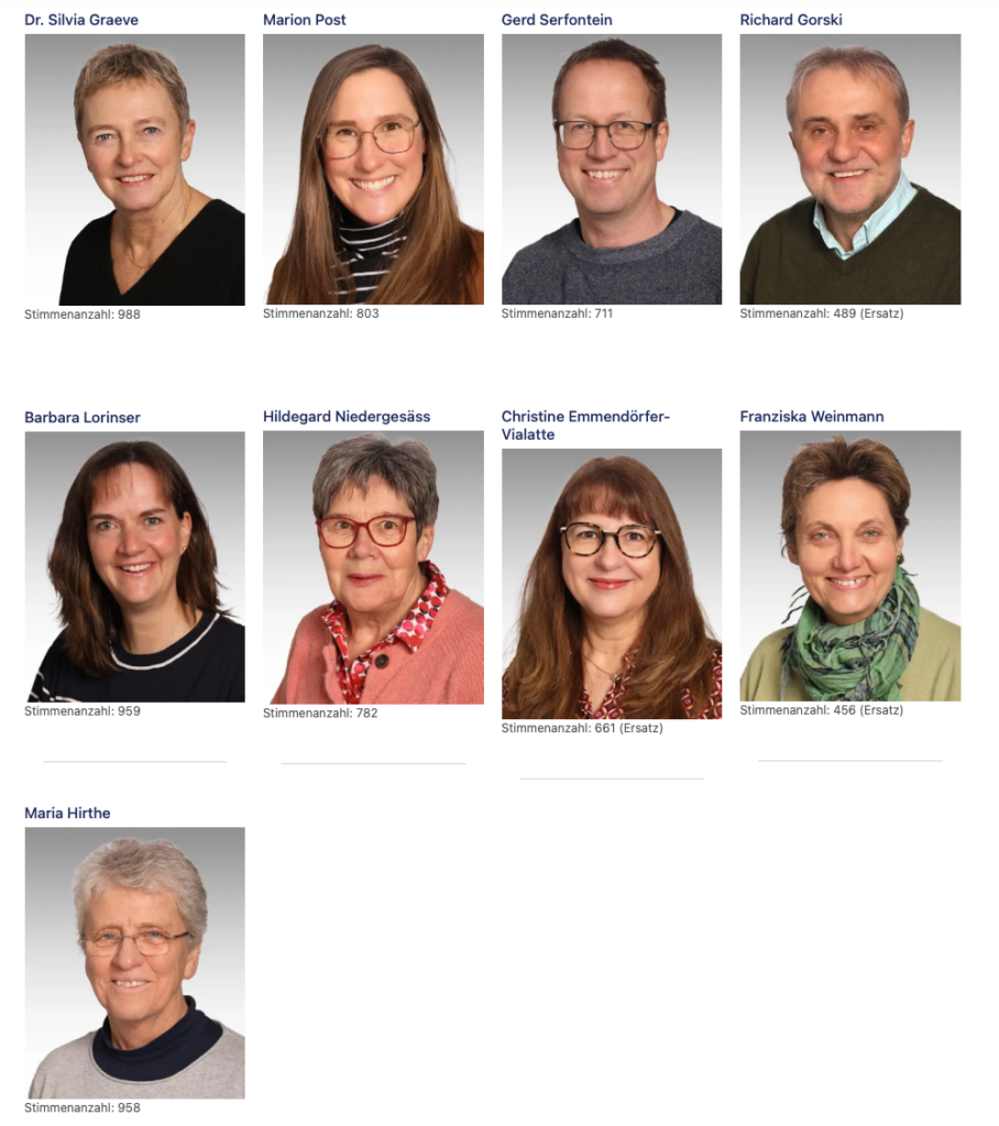 Die 17 Kandidaten und Kandidatinnen (Gewählte und Ersatzleute, die von Beginn zur Mitwirkung im KGR beratend eingeladen sind):