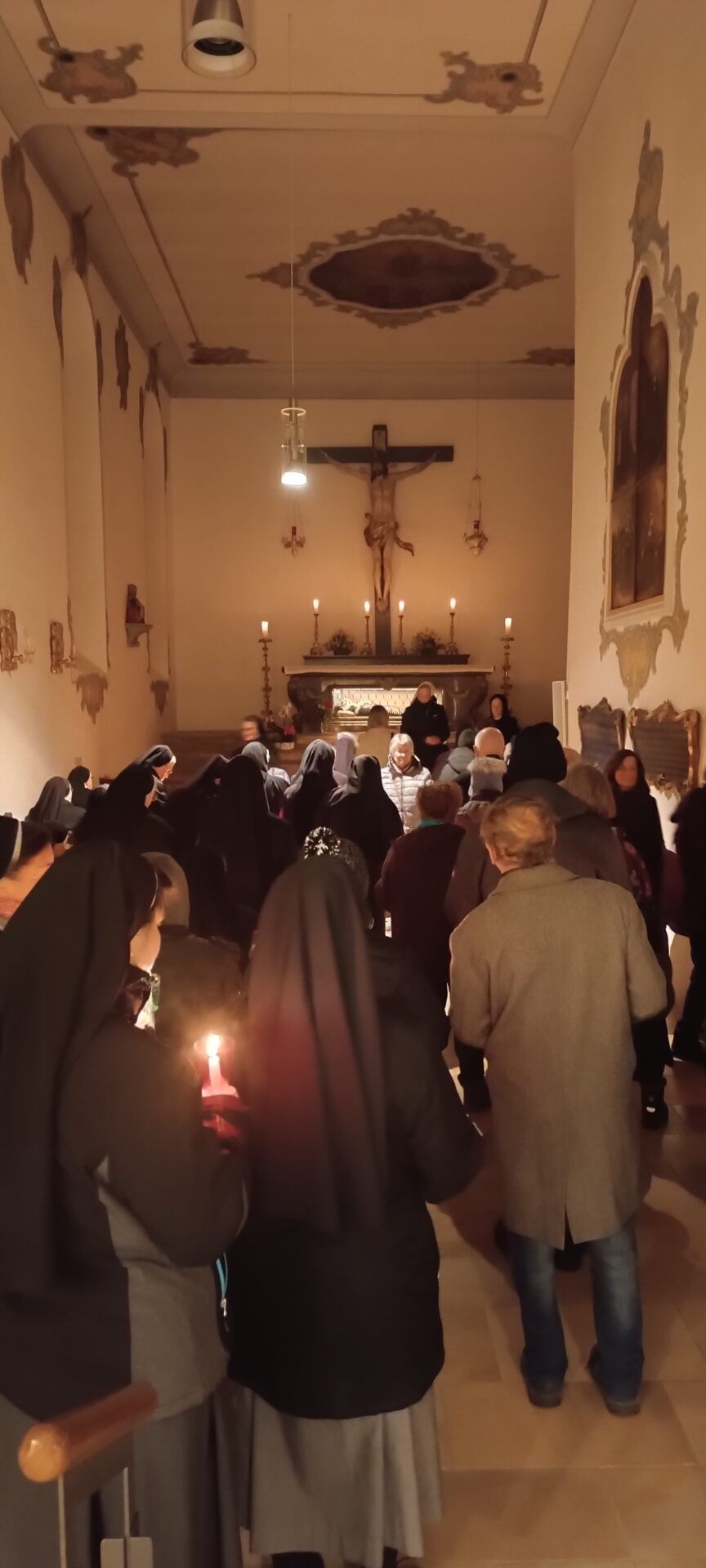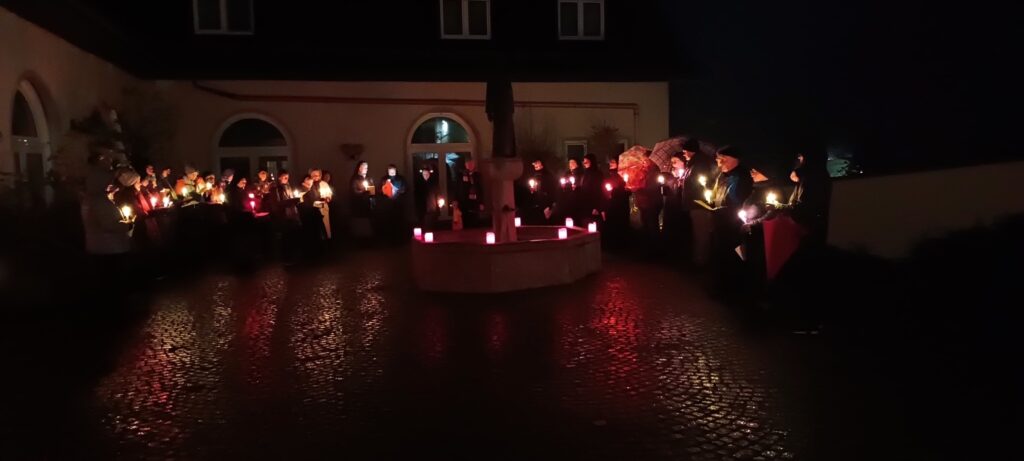 Reute – Bei der Lichterprozession zu Ehren der Guten Beth am Freitagabend (24.11.) fanden sich neben zahlreichen Franziskanerinnen mit Generaloberin Maria Hanna und Klosterpfarrer Ulrich Steck an der Spitze auch Pfarrer Stefan Werner und viele Gläubige aus der gesamten Seelsorgeeinheit ein. Start war bei der neu errichteten Gut-Betha-Stele am Dorfplatz Reute.