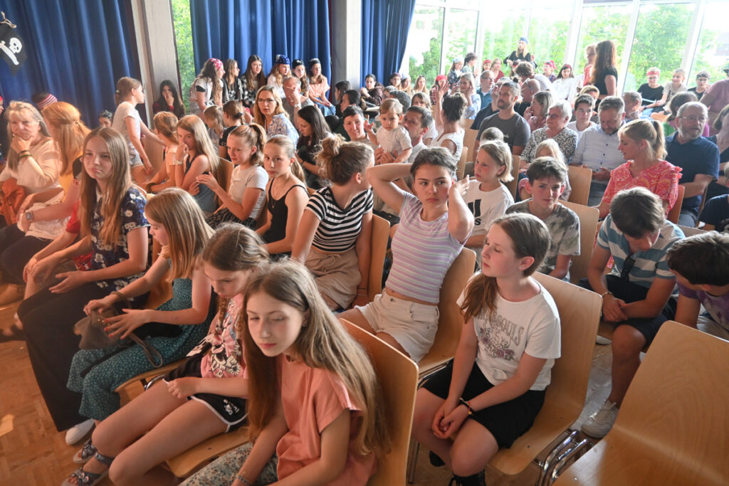 Bad Waldsee – Wer schon lange keine Schule mehr besuchte und dann unverhofft einem Schulmusical beiwohnt, stellt fest, dass die Schule doch ein ganz besonderer Ort ist. Die Schüler der Klassen fünf und sechs, gerade mal zwischen zehn und zwölf Jahren jung, brachten eine tolle musikalische und schauspielerische Leistung auf „die Bretter, die die Welt bedeuten“. Und das war das Besondere an vergangenen Dienstagabend (18.6.): Die Jungen und Mädchen sind noch soweit von dieser unserer Erwachsenen-Welt entfernt. Ihre Schule ist ein Ort der Geborgenheit. Ein Ort des Ausprobierens, des langsam in die Welt Heineinwachsens. Vor allem, wenn sie von zwei Lehrern wie Thomas Volkwein und Ernst Greinacher angeleitet werden.