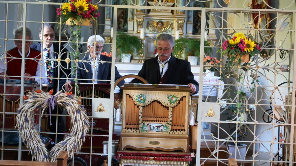 Initiiert und organisiert hatte diesen eineinhalb Stunden dauernden Musikgenuss mit verschiedensten Drehorgeln der in Haidgau wohnende Edi Hofmann, der hier eine Musikmanufaktur leitet. Ihm war es gelungen, drei weitere Drehorgelspieler und eine Drehorgelspielerin für dieses besondere Konzert zu gewinnen. Sie alle gehören dem Seniorenalter an und nahmen zum Teil weite Fahrwege auf sich, sogar aus der rätoromanischen Schweiz.