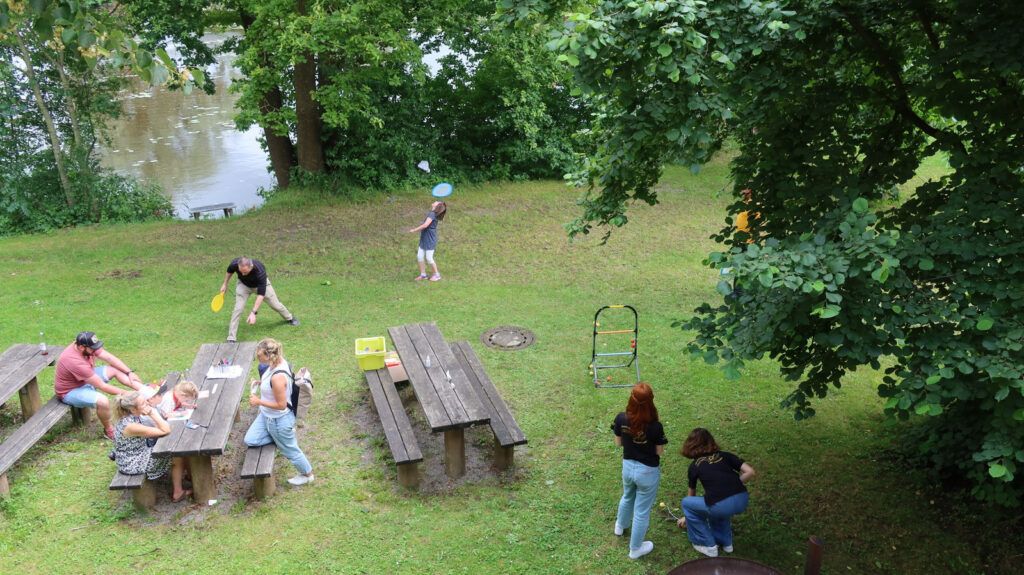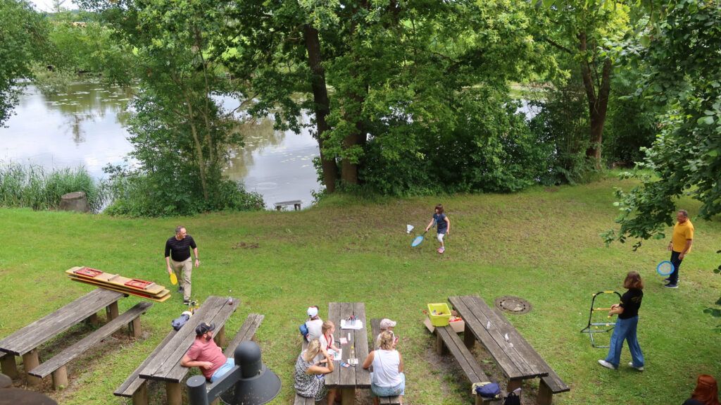 Am Sonntagnachmiittag fanden sich dieses Mal weniger Kinder ein auf der Festwiese beim idyllisch gelegenen Burgweiher. Das hatte wohl seinen Grund, denn das angebotene Kinderprogramm wurde hier durch die Mückenplage gestört.