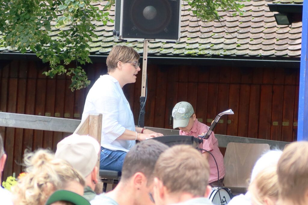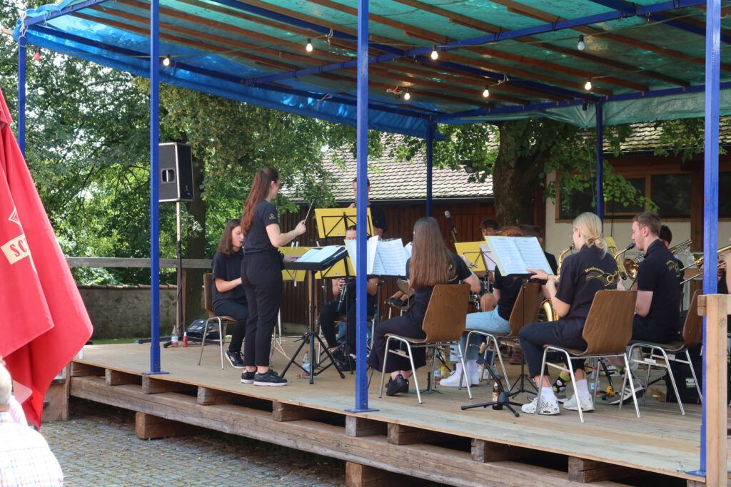 Zur Frühschoppen- und Mittagszeit strömten dann Gäste auch aus dem weiteren Umkreis in den Burghof und genossen schon am Vormittag die exzellent vorgetragenen Stücke der Blasmusik-Profis der „Durlesbacher Musikanten“. Mit reichlich Applaus wurde das Durlesbach-Ensemble mit seinen Blasmusikkönnern aus der Nachbarschaft belohnt, wie auch am frühen Nachmittag die vereinseigene Jugendkapelle der „Concordia“ unter Leitung von Kristina Hepp. Letztere vertrat Matthias Preiß, der wegen einer Knie-Operation noch pausiert. Die Nachwuchsmusikanten bewiesen, dass sie ihre Instrumente schon meisterlich beherrschen.