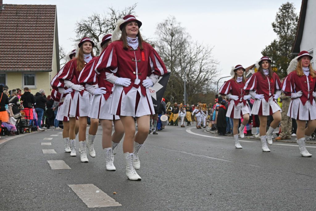 Neben dem Reutener Narrenlied, komponiert 1985, darf die Gilde 50 Jahre „Blaue“ feiern. Im blauen Häs, bestehend aus dem namensgebenden blauen Umhang und Hut, kleiden sich seit 1975 der Narrenrat und die Vorstandschaft. Der Umhang ist mit gestickten gelben Pfadlilien verziert, die auf das Wappen der Ortschaft zurückzuführen sind. Da hatte die frischgebackene junge Vorständin Julia Schuster und ihr Team in Vorfeld allerhand zu ackern, um dieses für Reute einmalige Ereignis über die Bühne gehen zu lassern. Und als Beobachter kann man nur sagen: Chapeau Reutener, das habt ihr gut gemacht.