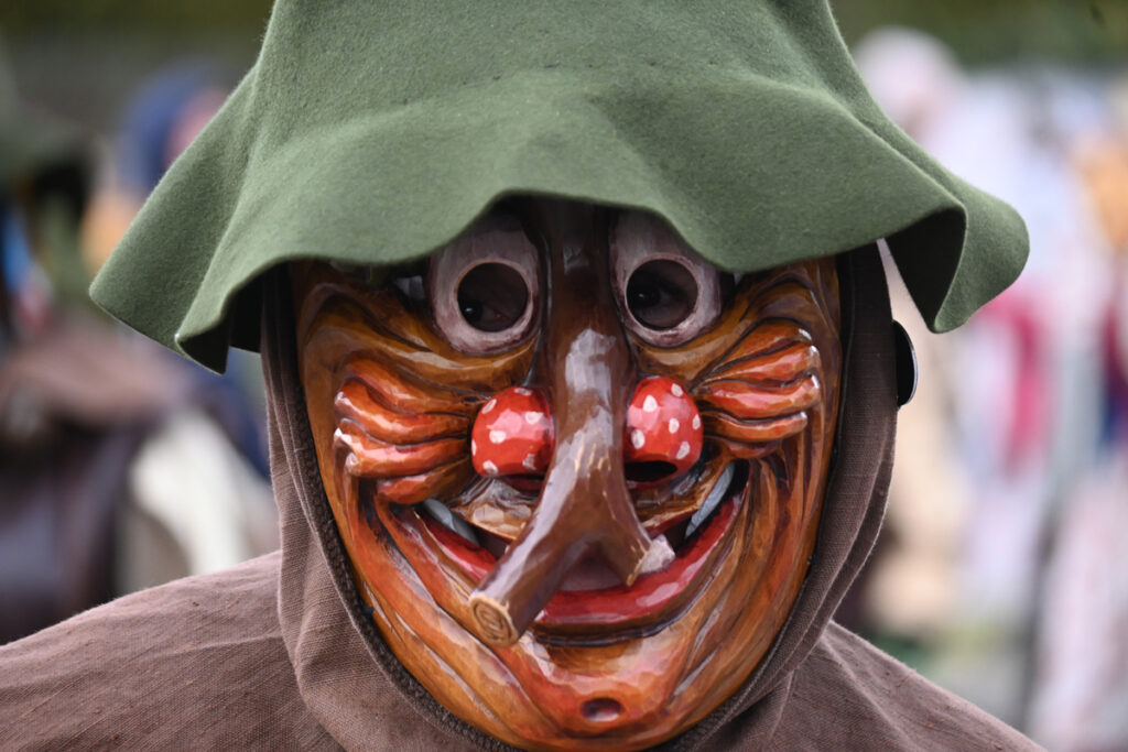 Und hinter dem Büttel kamen sie dann. Die tausende Hexen, Geister, Teufel, Räuber, und und… Der Umzugsflyer zählte nicht weniger als 72 Positionen auf. Die Zuschauer hatten ihre Freude und konnte dank eben dieses Flyers auch die richtigen Antworten auf die Narrensprüche skandieren. „Mochewangen – Knoche hange“, „Blunz Blauz –Hei Hei“, „Wicky – Hei“, „D’Liesl brennt – d’Sau rennt“, „G’Steidaweib – hot Moggla keit“, „Haldewang’r – Furzafang’r“, so vielfältig wie die Zünfte sind auch ihre Fasnetsrufe.