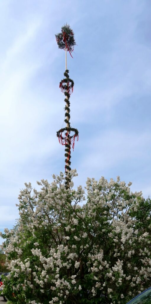 Vor dem Klosterhof in Haisterkirch wurde seit den 80er-Jahren ebenfalls ein Maibaum aufgestellt. Jetzt herrscht hier eine „Maibaumpause“, da die frühere Aufstellmannschaft um Siegfried Merk, Walter Rogg, Alfred Ruf, Markus Spieler (Einweiser) ihr jahrelanges Engagement nach einer durch Corona geschuldeten Pause beendet hatten.