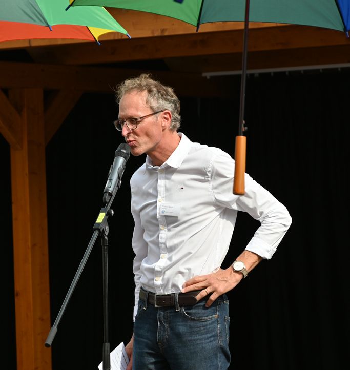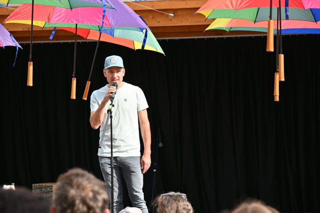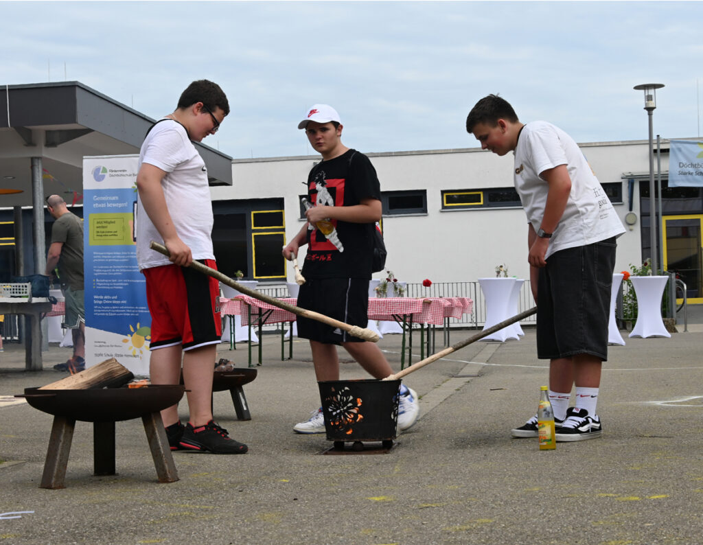 Eloquent und stimmgewaltig warb im Anschluss der Vorsitzende des Fördervereins der Döchtbühlschule, Markus Lerner, Spenden und neue Mitglieder ein. Neben dem Getränkestand hatte er ein Banner aufgestellt, so dass man nach dem Programm gleich die Aufnahmeanträge ausfüllen konnte.