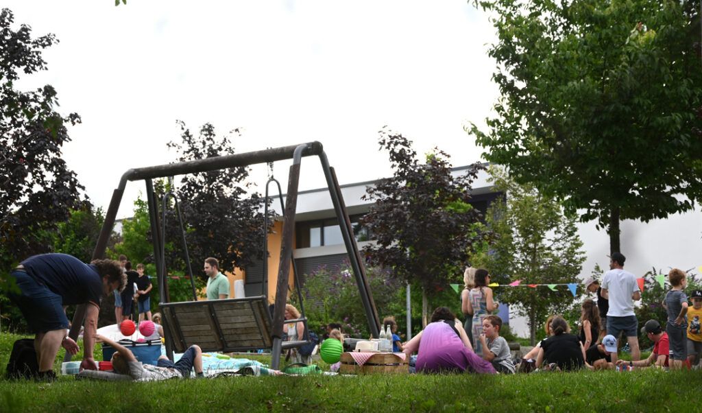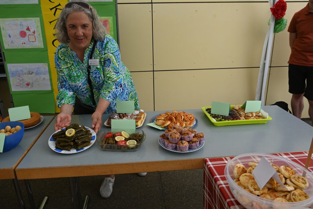 Dann ging‘s ab zum Picknick. Eltern und Schüler waren aufgefordert, einen Picknickkorb mit Leckereien zu packen. Auch wer nichts mitgebracht hatte, konnte sich an dem durch Eltern-Spenden wohlgefüllten herzhaften und süßen Büffet bedienen, sich ein hübsches Rasenplätzchen aussuchen und den wunderbaren Sommerabend ruhig und gemütlich ausklingen lassen.
