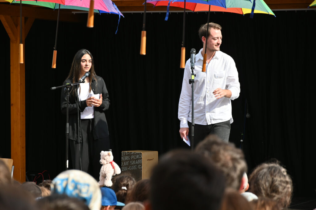Die Schülerin Ecrin Üstün und ihr Klassenlehrer Lukas Umbrecht führten durch das abwechslungsreiche, gut einstündige Programm, das die Schüler mit ihren Lehrern zusammen gestaltet hatten.