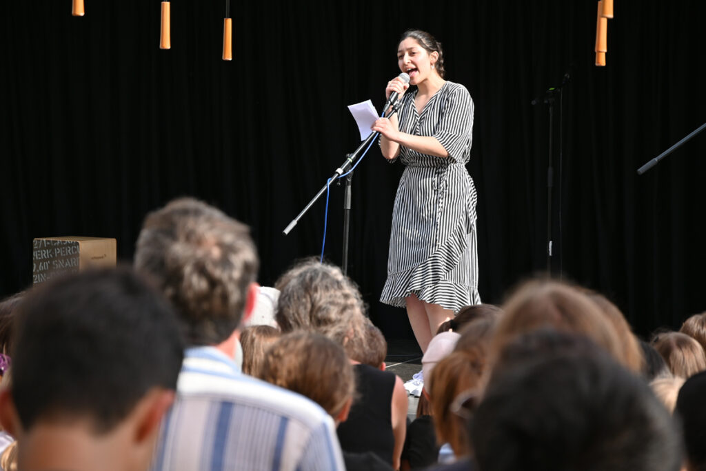Defne Cihan, ebenfalls Schülerin an der Döchtbühlschule, gab anschließend eine hinreißende Kostprobe ihres Gesangstalents ab. Mit viel Emotion interpretierte sie einen modernen Song und wurde mit viel Beifall belohnt.