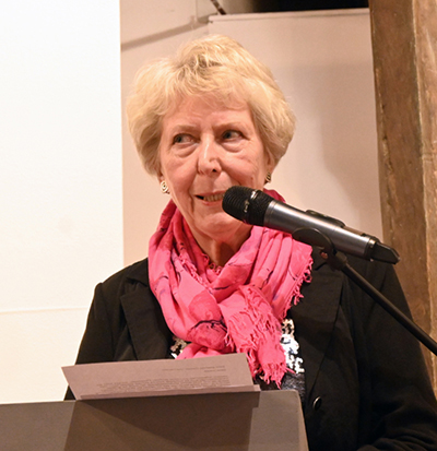 Brigitte Hecht-Lang bei Begrüßung und Erläuterung der Ausstellung.