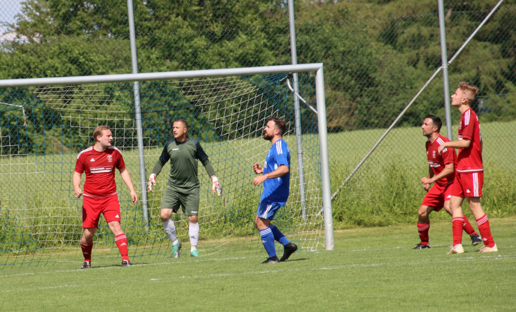 Aufgrund der Pfingstferien musste Coach Chris Heß auf etliche Akteure verzichten, mit Luca Deiber und Vincent Müller standen zwei Kicker erstmals im Kader der Reutener Aktiven. Aus dem AH-Team halfen Serkan Akbalik und Manfred Miller bei der Zweiten aus. So agierten die Gastgeber zunächst eher abwartend und konnten die Begegnung ausgeglichen gestalten. Durch einen schön vorgetragenen Angriff gingen die Wolfegger Gäste nach gut zwanzig Minuten dann aber in Führung. SVR-Keeper Eldin Sekic hielt sein Team in der Folge im Spiel und konnte mit zwei starken Paraden weitere Gegentreffer verhindern. Die Gastgeber fingen sich jedoch wieder und kamen durch einen fulminanten Schuß von Jacob Schuhmacher ins kurze Eck zum 1:1-Ausgleich. Beide Seiten hatten vor dem Halbzeitpfiff noch je eine gute Möglichkeit auf den nächsten Treffer, doch zur Pause blieb es beim Spielstand. Nach dem Seitenwechsel plätscherte die Begegnung lange Zeit eher nur noch vor sich hin, die Debüts von Luca Deiber und Vincent Müller im Aktivenbereich waren da schon die Highlights. Erst in der Schlussphase kam wieder etwas Schwung in die Partie und Manfred Miller hatte den Siegtreffer für Reute auf dem Schlappen, doch landete sein Abschluss direkt beim Keeper. Bereits in der Nachspielzeit kam es dann zum bitteren 1:2, als die Gäste auf links durchbrachen und in der Mitte Marcel Amann frei zum Siegtreffer einnetzen konnte.