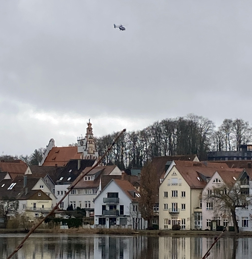 Der Hubschrauber über Bad Waldsee (16.28 Uhr). Foto: Erwin Linder