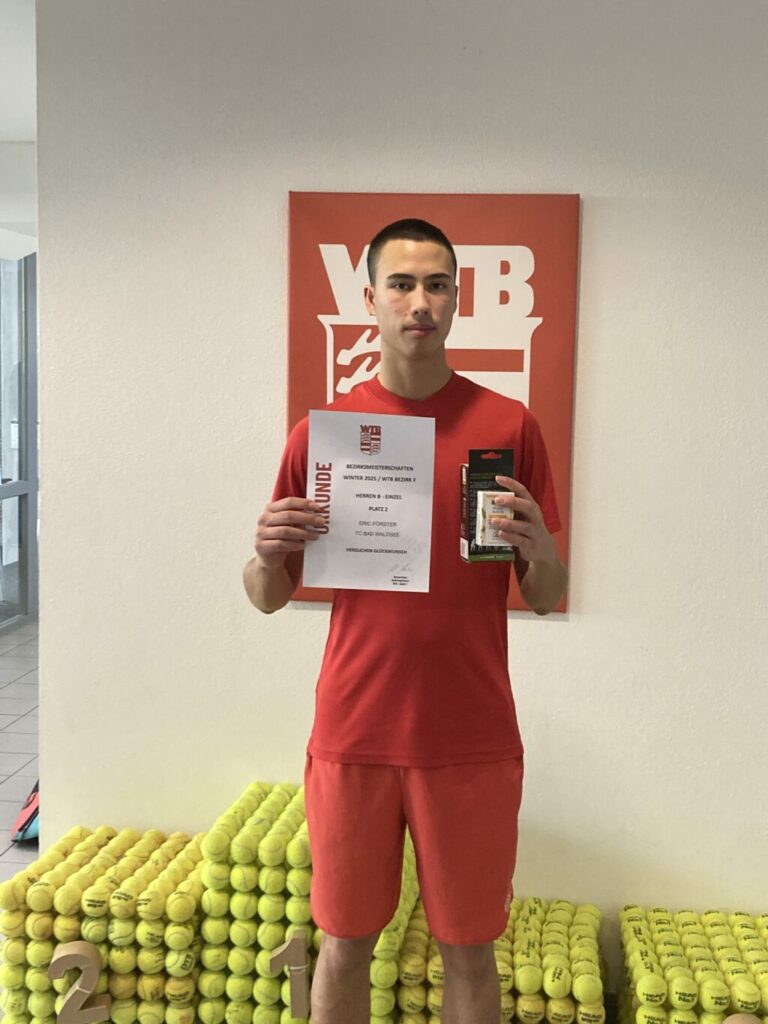 Denkbar knapp am Titel vorbei rauschte Eric Förster bei den Herren B. Nach vier sicheren Siegen traf er im Finale auf Daniel Tsvetanov vom TC Sigmaringen, gegen den er nach 2,5 Stunden Spielzeit mit 7:6 6:7 6:10 den Kürzeren zog.
