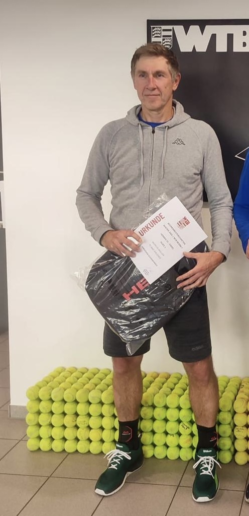 Souveräner Bezirksmeister bei den Herren 55 wurde Markus Müller. An Position 2 gesetzt gab er in seinen drei Matches nur zehn Spiele ab und sicherte sich so im Finale gegen den topgesetzten Blautaler Christoph Ebner mit 6:3 6:2 ungefährdet den Titel.