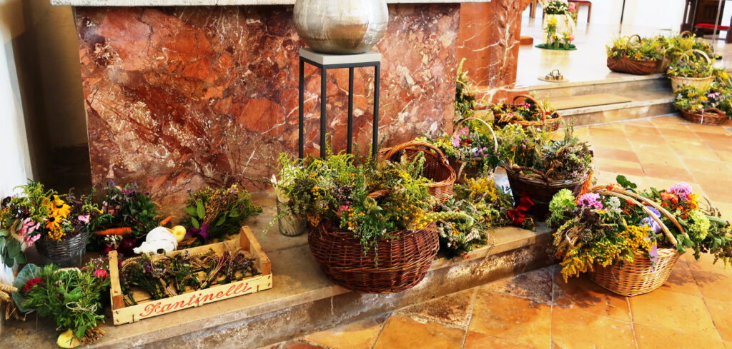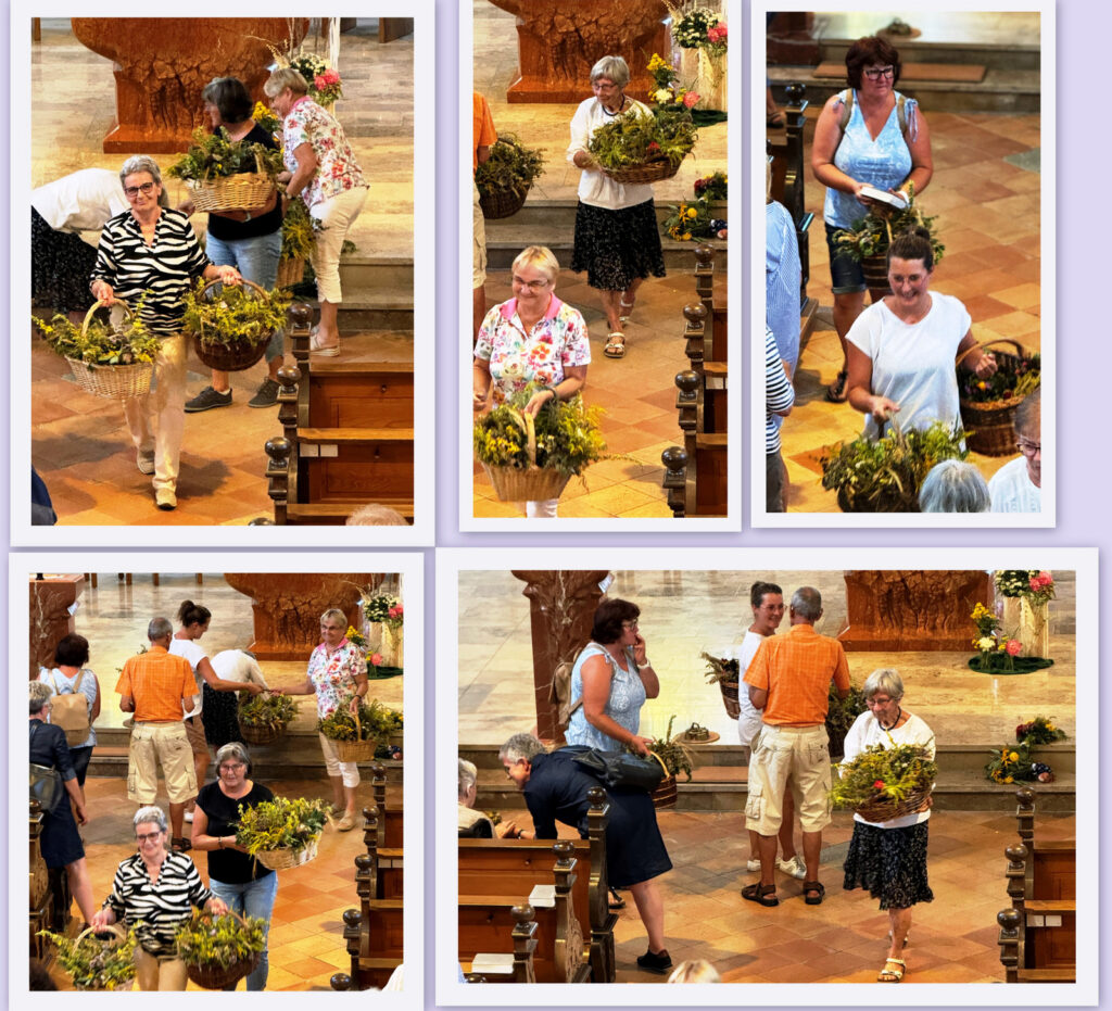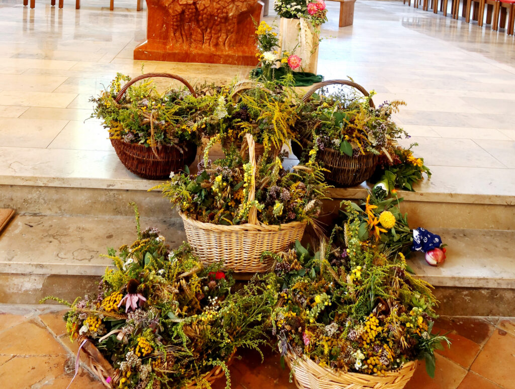 Nach dem Gottesdienst durften die Gottesdienstbesucher Kräuterbüschel aus den Körben der Haisterkircher Frauenschar entnehmen und als geweihtes Mitbringsel ins eigene Heim bringen.