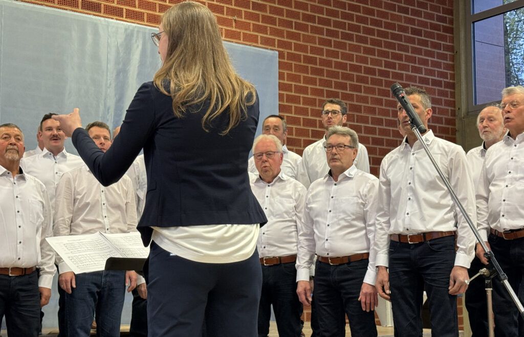 Als sich dann der Männerchor zusammen mit dem Projektchor auf der Bühne platzierte, ging ein Raunen durch die Reihen der Zuhörerinnen und Zuhörer. Mit ihren Liedvorträgen „Und wenn das Schicksal es will“ sowie „ Altes Fieber“ eroberten die Sänger durch ihre stimmkräftige, durchaus harmonische Gesangsdarbietung die Herzen aller Anwesenden. Die Klavierbegleitung hatte auf bewährte, professionelle Art und Weise Verena Westhäußer übernommen.