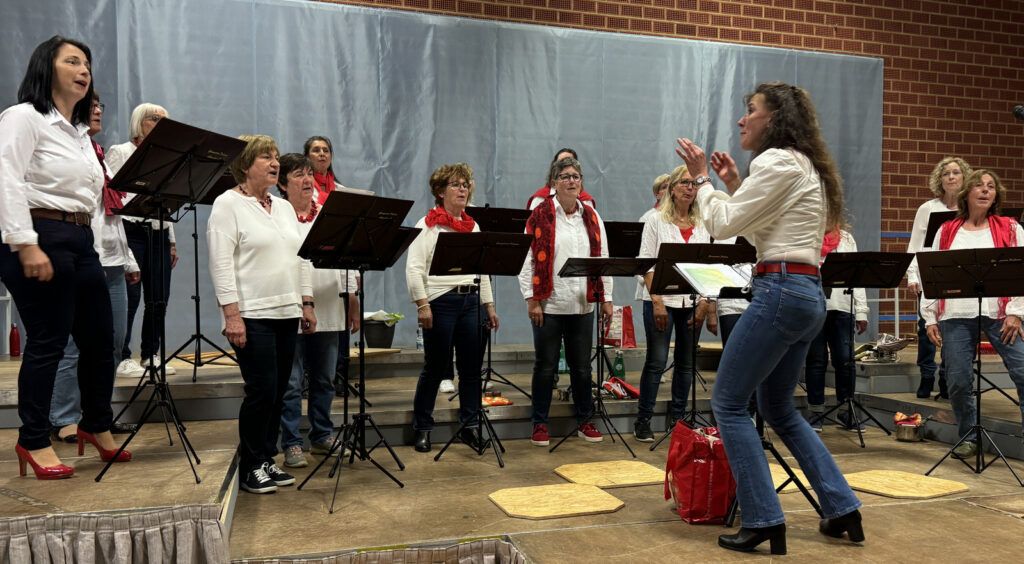 Souveränes Dirigat: Katrin Reichle führte die 42 Sänger des Stammmchores und dazu 20 Projekt-Sänger sicher durch den Abend.