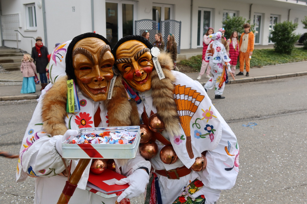 Auffallend viele Maskenträgerinnen und Maskenträger der hiesigen wie auch der befreundeten Zünfte beteiligten sich am Umzug. Auch erfreulich viele närrische Gruppierungen aus der Stadt glänzten nicht nur durch die Buntheit der Kostüme, sondern durch ihr närrisches Tun mit viel Bewegungsfreude und kräftigen AHA-Rufen. Allseits erkennbar war die freundliche, frohmachende Zuwendung zu all den Menschen, ob groß oder klein, an derUmzugsstrecke.