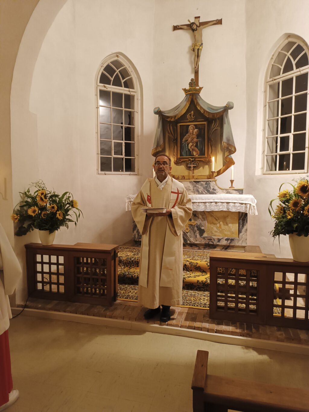 Die Predigt von Pfarrer Werner war getragen von Sorge um den Frieden in der Welt angesichts der schreckliche Kriege in der Ukraine und Israel: „Maria, du Königin des Friedens, wir rufen dich als Fürsprecherin bei Gott an: Bewahre uns vor noch mehr Gräueltaten, Leid und Tod und vor allem der Gefahr eines Flächenbrandes“. Bewusst sprach der Prediger die Worte: „Gott, wo bist Du?“.