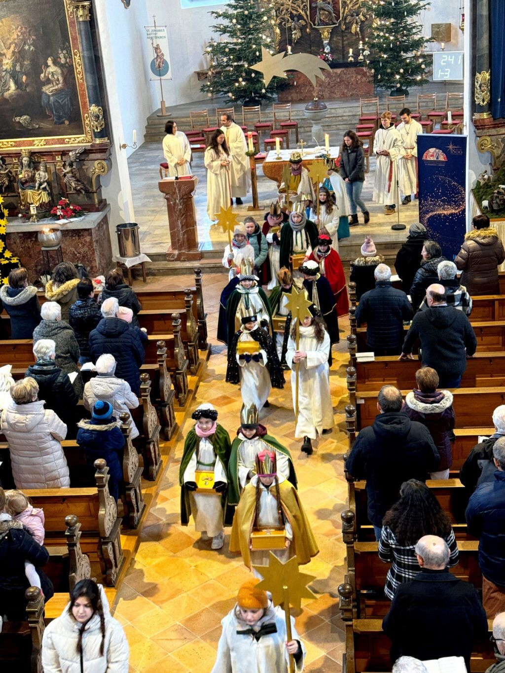 Dieses Mal macht die Aktion deutlich, dass Mensch und Natur am Amazonas, aber auch hier bei uns, eine Einheit bilden sollten. Die hiesigen 30 Sternsinger wurden ermutigt, sich gemeinsam mit Gleichaltrigen aller Kontinente als Botschafter des Friedens zu engagieren. Zelebrant dieses festlichen Gottesdienstes war Pfarrer Stefan Werner. Für die feierliche Umrahmung mit Orgelklängen sorgte Leo Straßner, der auch den Gemeindegesang wohltuend unterstützte.