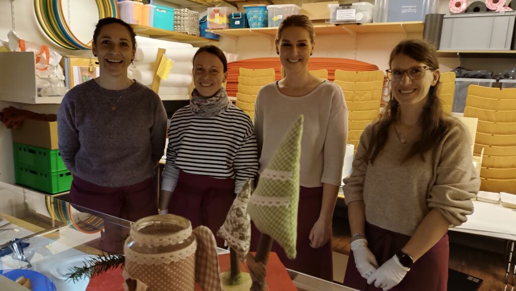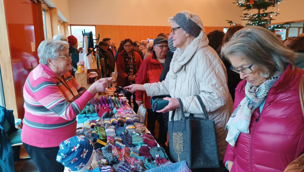 Während die Erlöse vom Strickkreis Reute-Gaisbeuren Missionsprojekten des Klosters zufließen, gehen Einnahmen bei Monika Blaser an Klumpfuß- und Feuerkinder in Tansania. Erstmals war Familie Rimmele mit einem Weinstand inklusive heißem Eierlikör präsent; sie wollen den erzielten Erlös dem örtlichen Kindergarten überlassen.