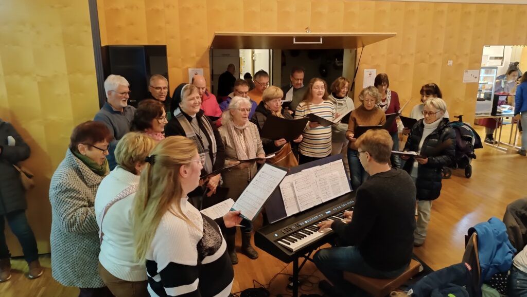Der Liederkranz „Reutissimo“ mit ihrem Dirigenten Eckart Spägele ließ es sich nicht nehmen, auch einen zweiten Auftritt im Freien bei ihrem Verkaufsstand zu präsentieren. Neben adventlichen Klängen des örtlichen Musikvereins brachten Jagdhornbläser aus Wolfegg stimmungsvolle Weisen zu Gehör.