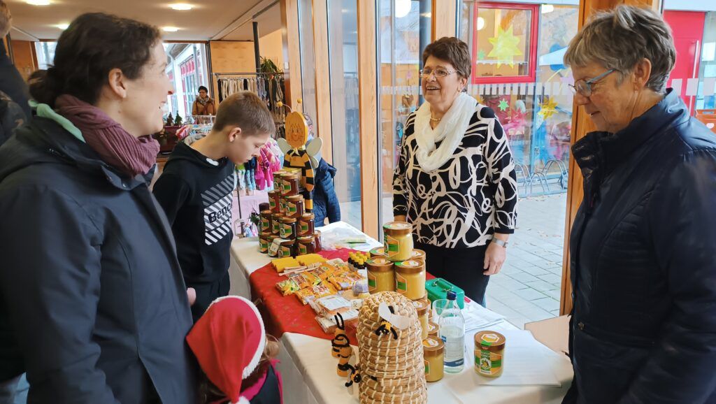 Sehr wohl auf ihre Kosten kamen viele, meist örtliche Marktbeschicker, sie freuten sich über ein sehr günstiges Standgeld. Alle Arten von Advents- und Weihnachtsdeko, auch Honigprodukte fanden guten Absatz.