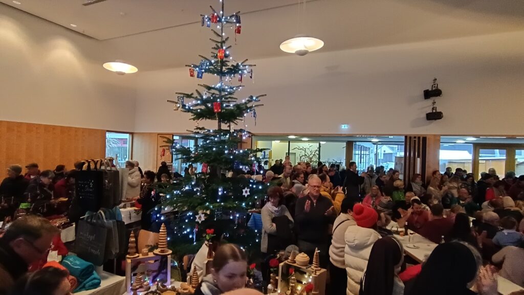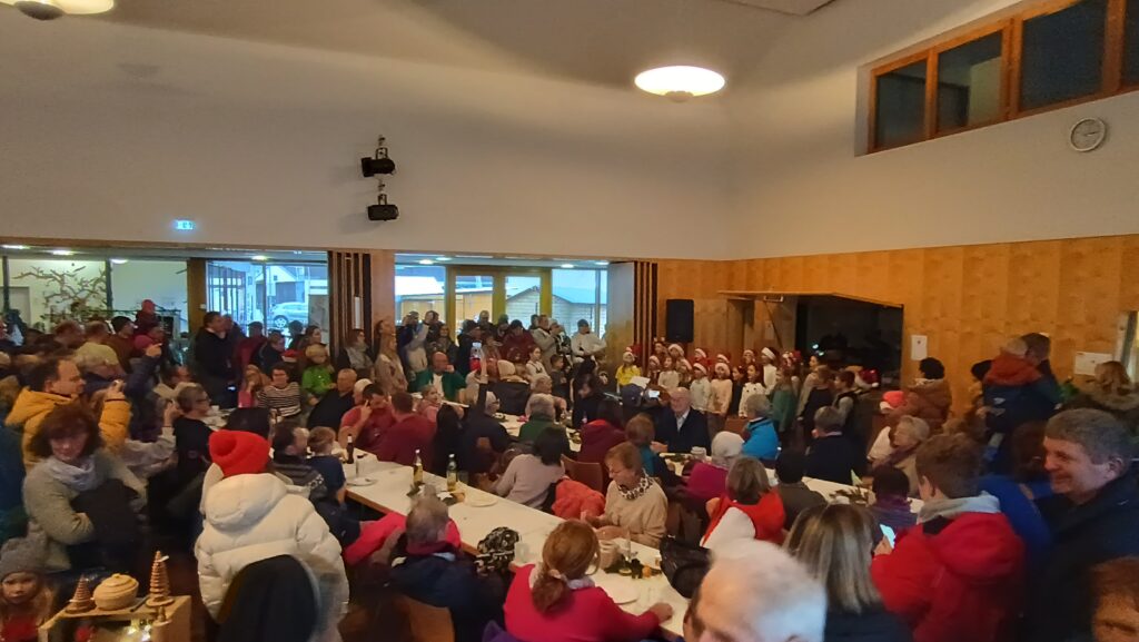 Gaisbeuren – Nachdem es im letzten Jahr bei der schon traditionellen Dorfweihnacht Neuschnee gab, zeigte sich dieses Jahr der Himmel zunächst im Nebelgrau. Doch pünktlich samstagsnachmittags zum Beginn der Veranstaltung wärmten Sonnenstrahlen den Festplatz. Schon bald waren die Parkplätze in der Gaisbeurer Dorfmitte rar, viele hunderte Besucher freuten sich auf eine adventliche Stimmung, gute Auftritte sowie Glühwein und Leckereien.