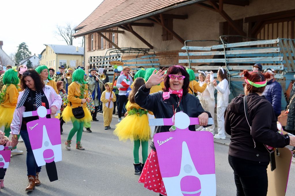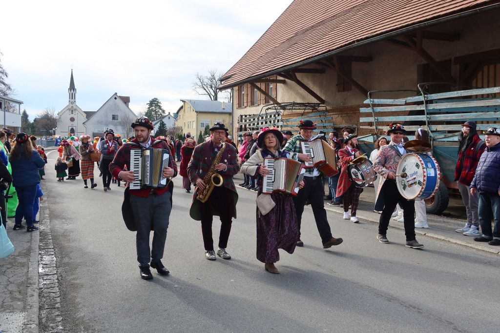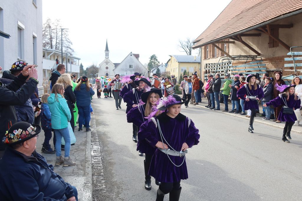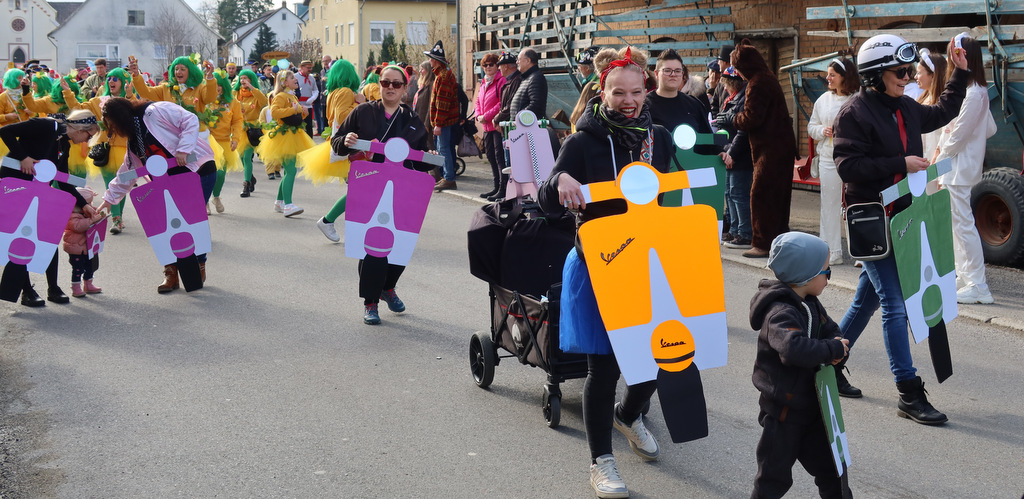 Den prachtvollen Abschluss bildete eine toll gekleidete venezianische Maskengruppe, die mit großem Beifall bedacht wurde, wie all die vielen befreundeten Musikgruppen und Musikkapellen, die mit schmissigen, närrischen Klängen das Umzugsgeschehen bereicherten.