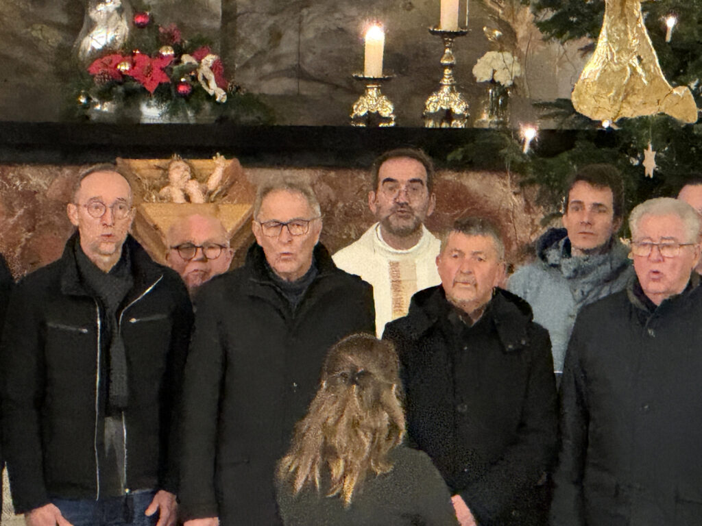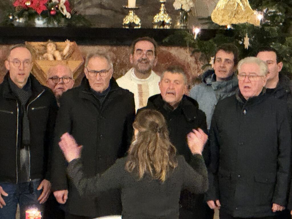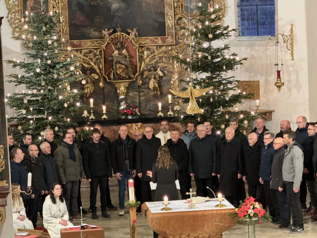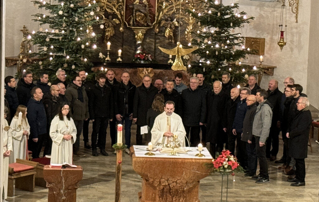 Der festliche Charakter wurde durch ein außergewöhnliches, großartiges, musikalisches Angebot betont. Zur Umrahmung der Eucharistiefeier wurde eine wahrlich „goldene Klangwelt“ geboten mit drei engagierten Musikgruppen vom Ort. Daran beteiligt waren auf der Empore ein Bläserensemble des Haisterkircher Musikvereins, der Sing- und Instrumentalkreis Haisterkirch und im Altarraum der Männerchor Haisterkirch unter Leitung von Katrin Reichle. Das Zusammenwirken aller drei musikalischen Gruppierungen war gut abgestimmt. So wurde die Eucharistiefeier zu einem musikalischen Festgenuss. Anhaltender, großer Beifall war Lohn für all die Sängerinnen, Sänger und Musizierenden, die Lektorinnen und Lektoren, die Minis und natürlich auch für Pfarrer Stefan Werner.