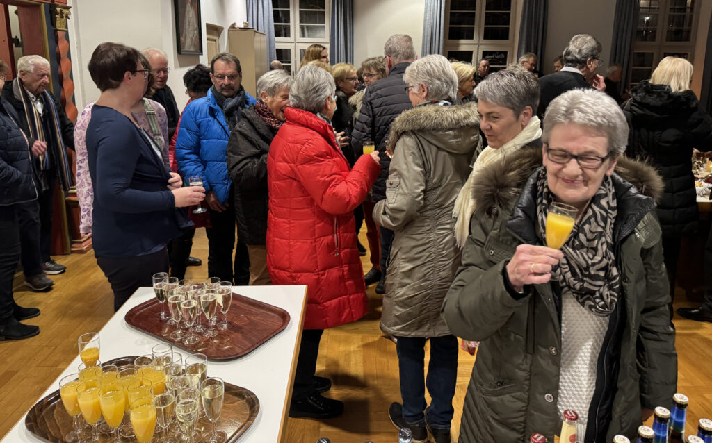 Zum anschließenden Neujahrsempfang im Pfarrgemeindesaal war von Angehörigen des Kirchengemeinderats und weiteren Helferinnen und Helfern inmitten des Saals eine reichhaltige Tafel mit leckeren Köstlichkeiten angerichtet worden. Dazu wurden verschiedenste Getränke kredenzt.
