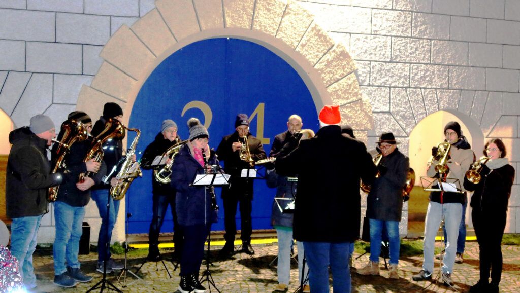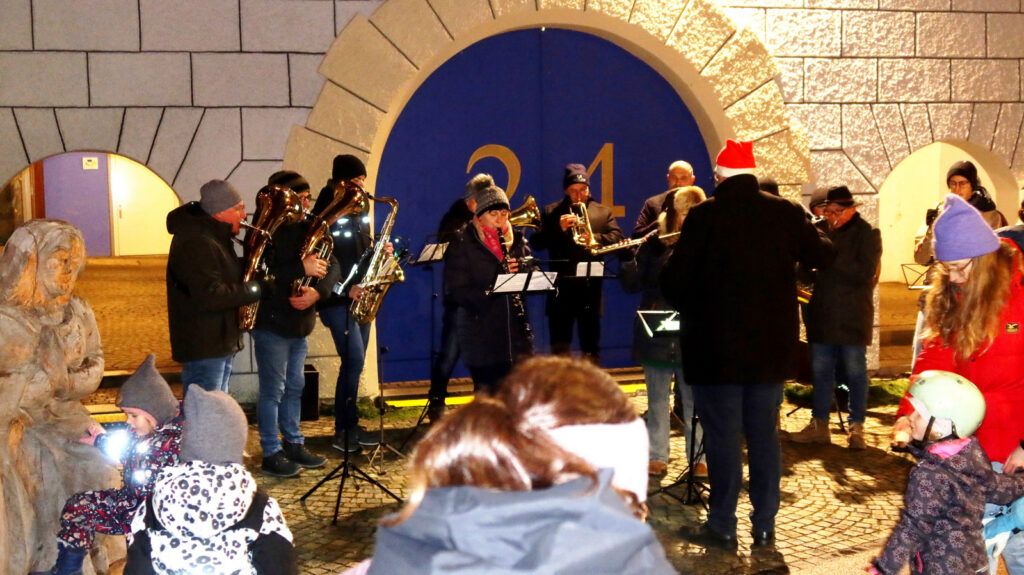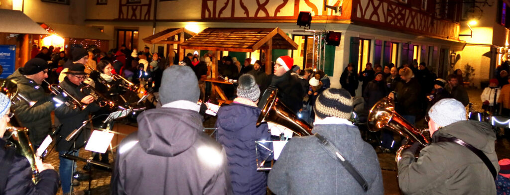 Dieses Jahr erfreute ein 12-köpfiges Ensemble der Musikkapelle Haisterkirch am Vorabend des 3. Adventssonntags eine große Zuhörerschar mit blasmusikalischen, adventlichen und weihnachtlichen Klängen. Dirigent Klaus Wachter, der selbst kräftig mitsang, hatte eine wahres Potpourri an jahreszeitlich passenden Musikstücken ausgewählt. Der Beifall war den Blasmusizierenden gewiss, zumal auch aus dem Haistergau viele Zuhörerinnen und Zuhörer extra gekommen waren.